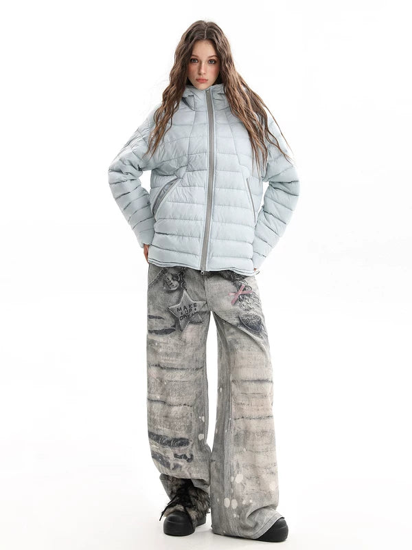 Giacca Puffer in Piuma d'Oca Leggera con Cappuccio
