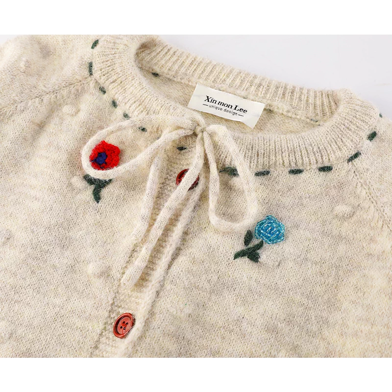 Cardigan in maglia ricamata con bottoni davanti