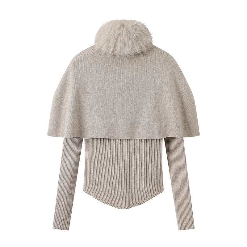 Set di felpa con cappotto in maglia e colletto in pelliccia sintetica