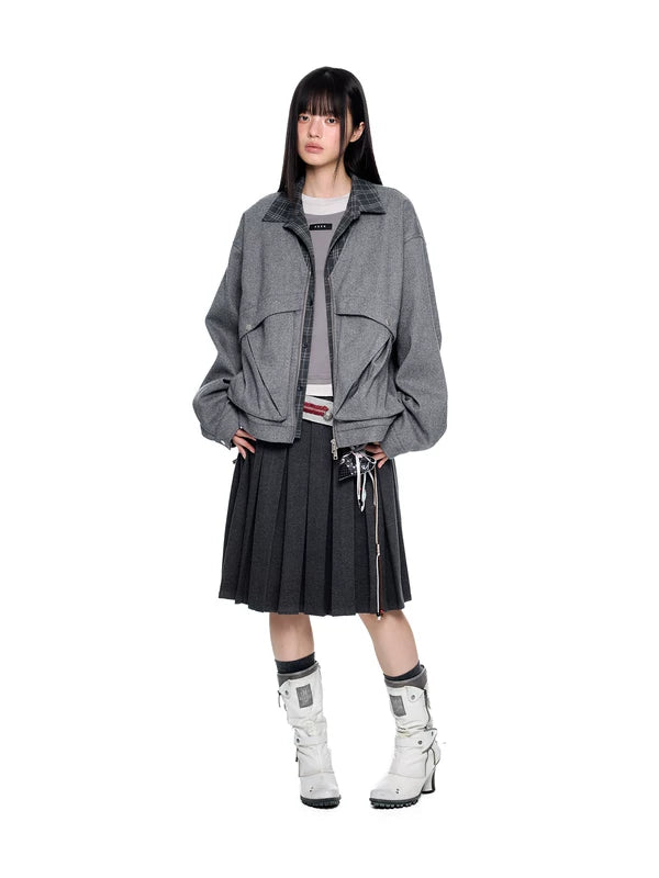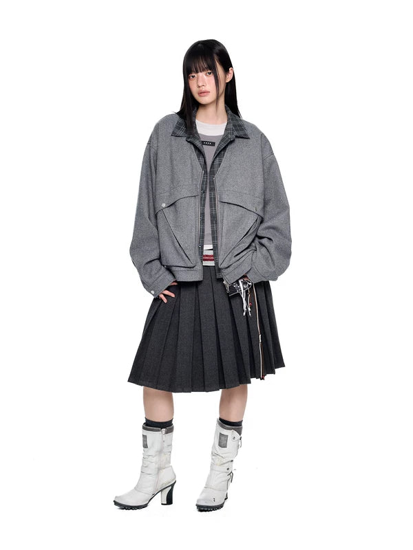 Giacca con zip a colletto a quadri in due pezzi finta