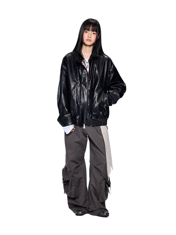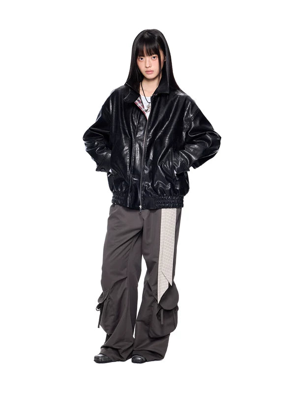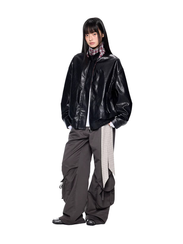Giacca con zip in ecopelle e colletto a quadri