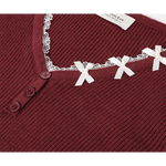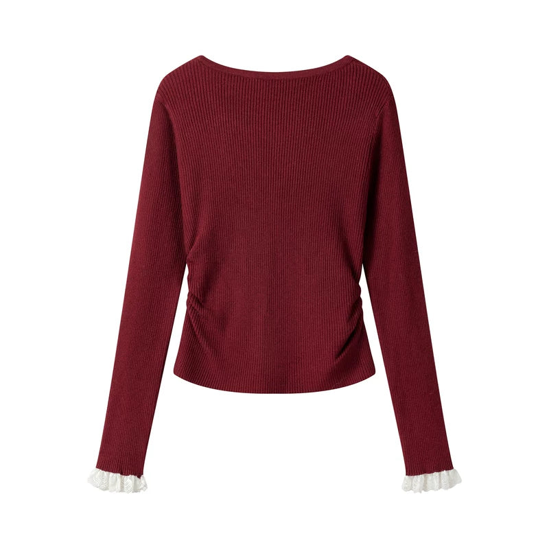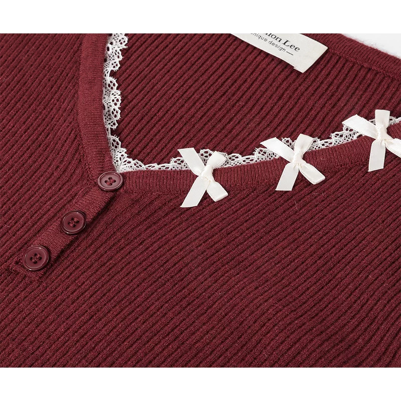 Maglione a maglia con scollo a V rigato e rifinitura in pizzo