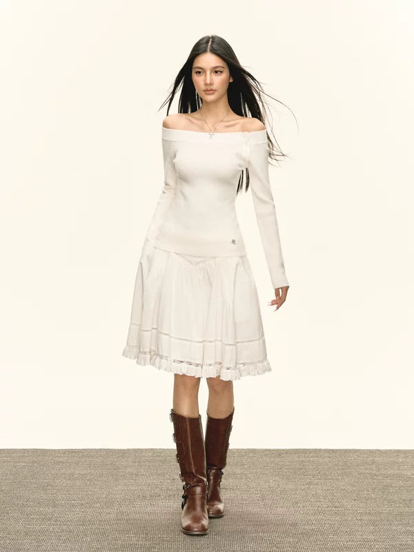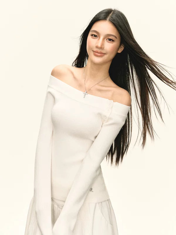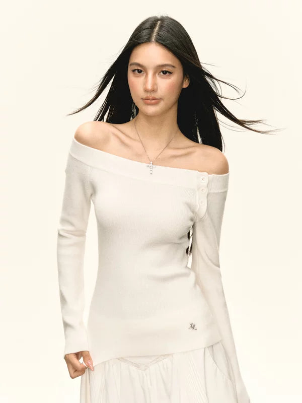 Felpa a spalla scoperta in maglia con dettaglio dei bottoni
