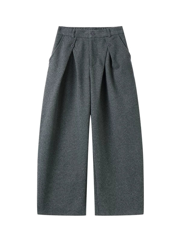 Pantaloni plissettati a gamba larga in lana invernale