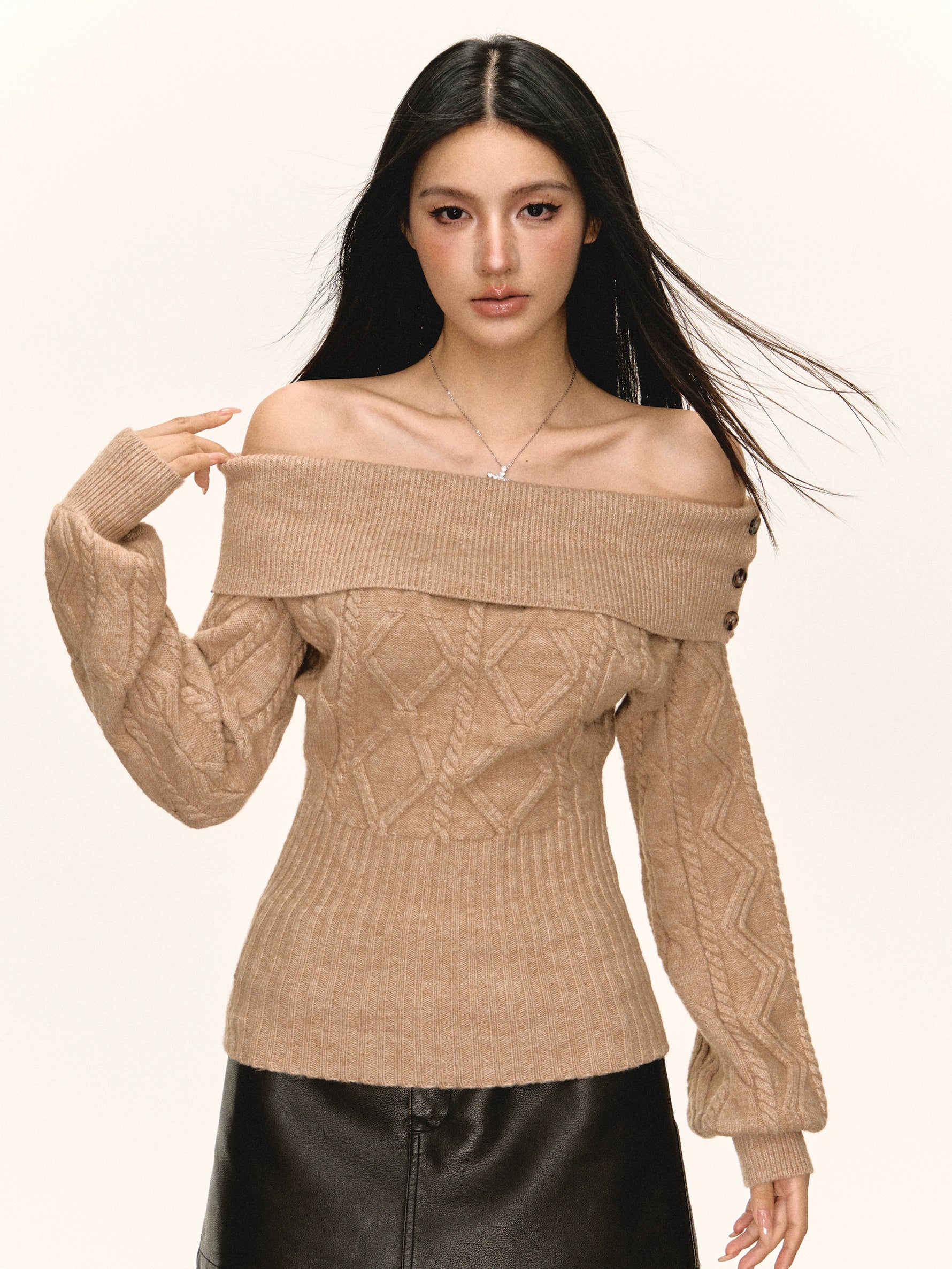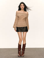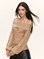 Maglione a coste con spalle scoperte