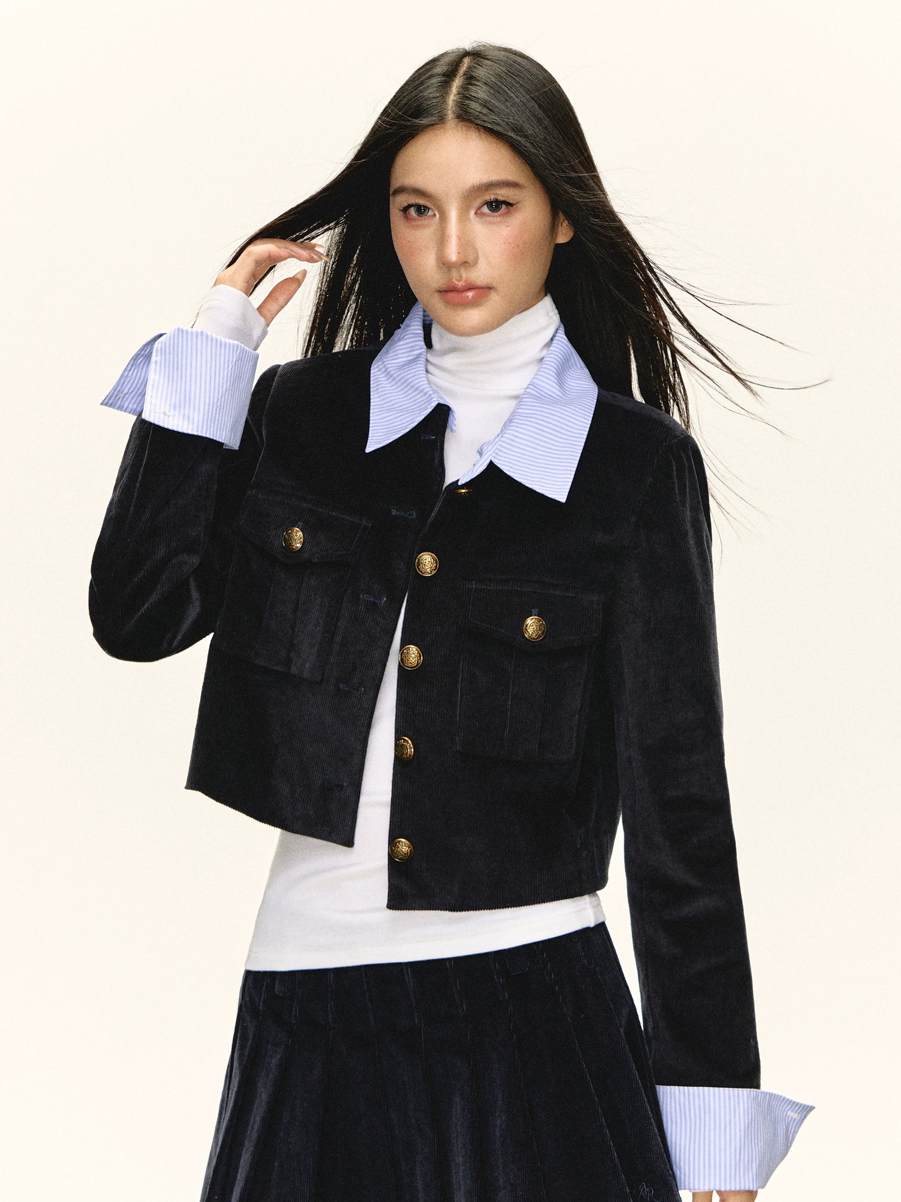 Set di abbigliamento in stile college con inserti in corduroy