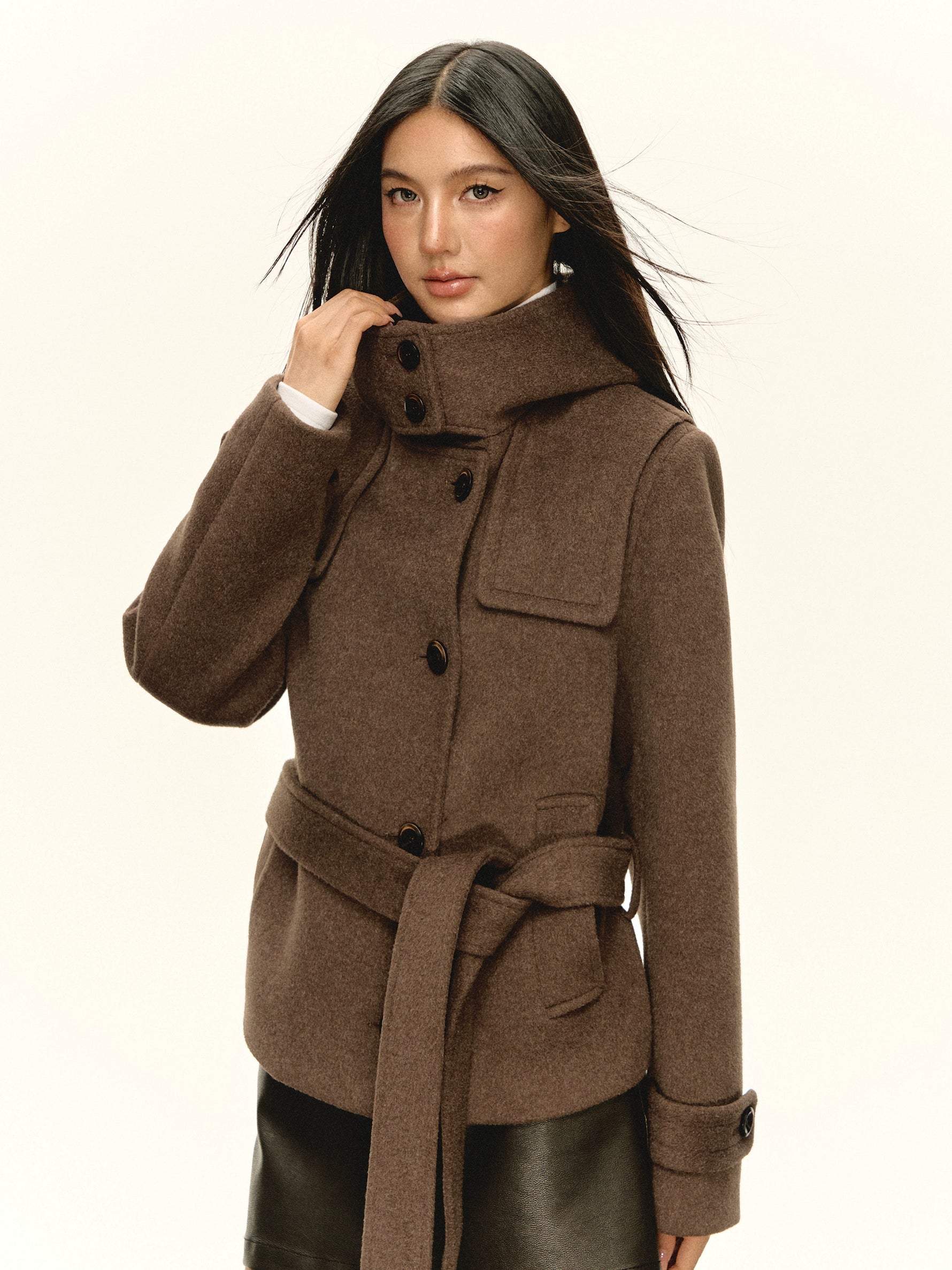 Cappotto con cappuccio in pelliccia sintetica con cintura