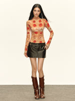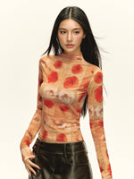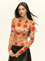 Top a maniche lunghe con colletto a dolcevita e stampa floreale