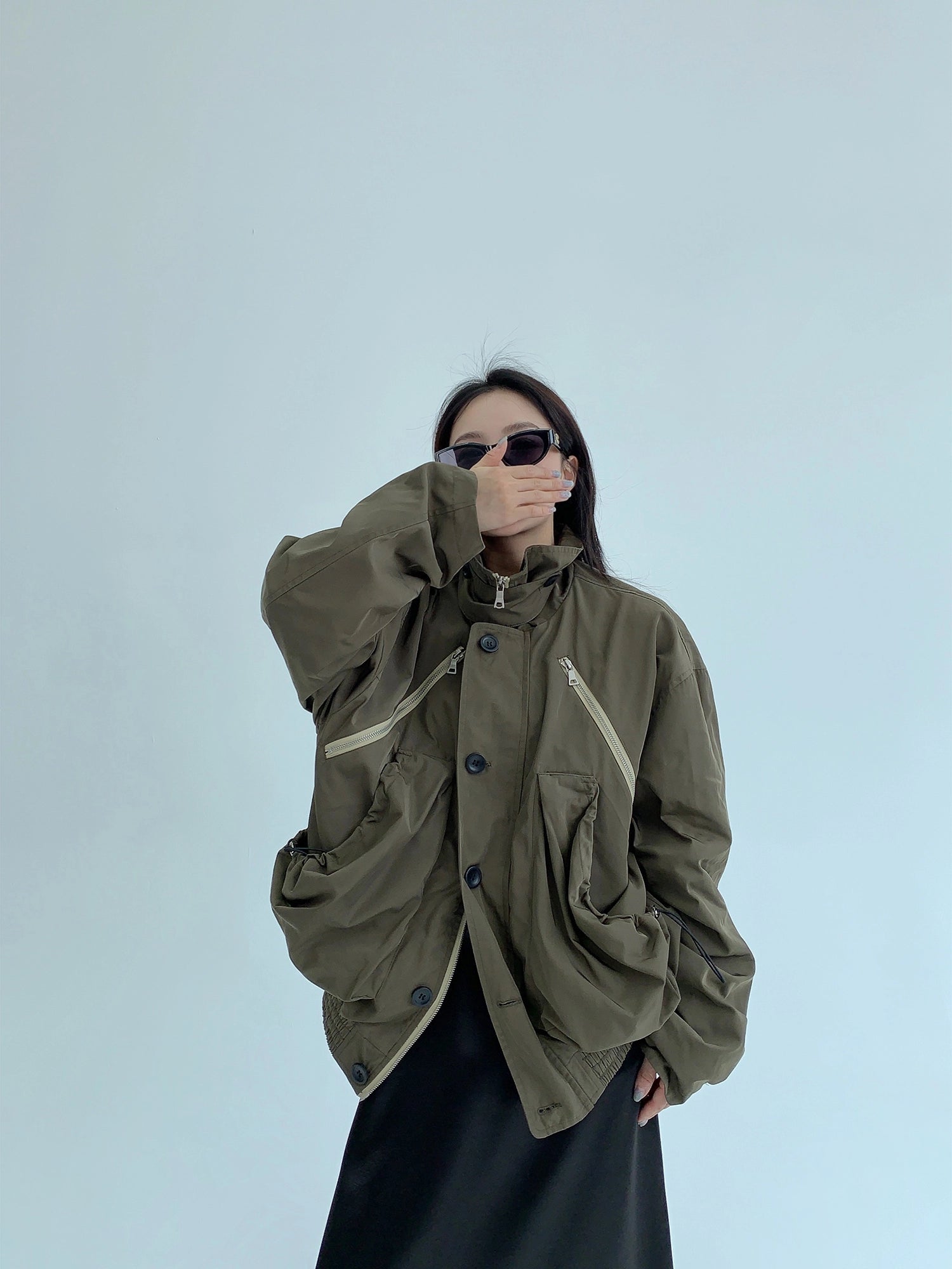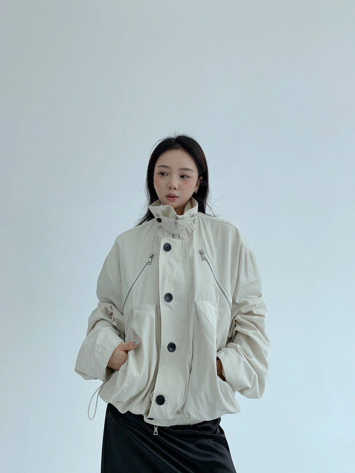 Giacca da esterno ampia con colletto alla coreana funzionale