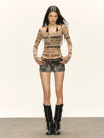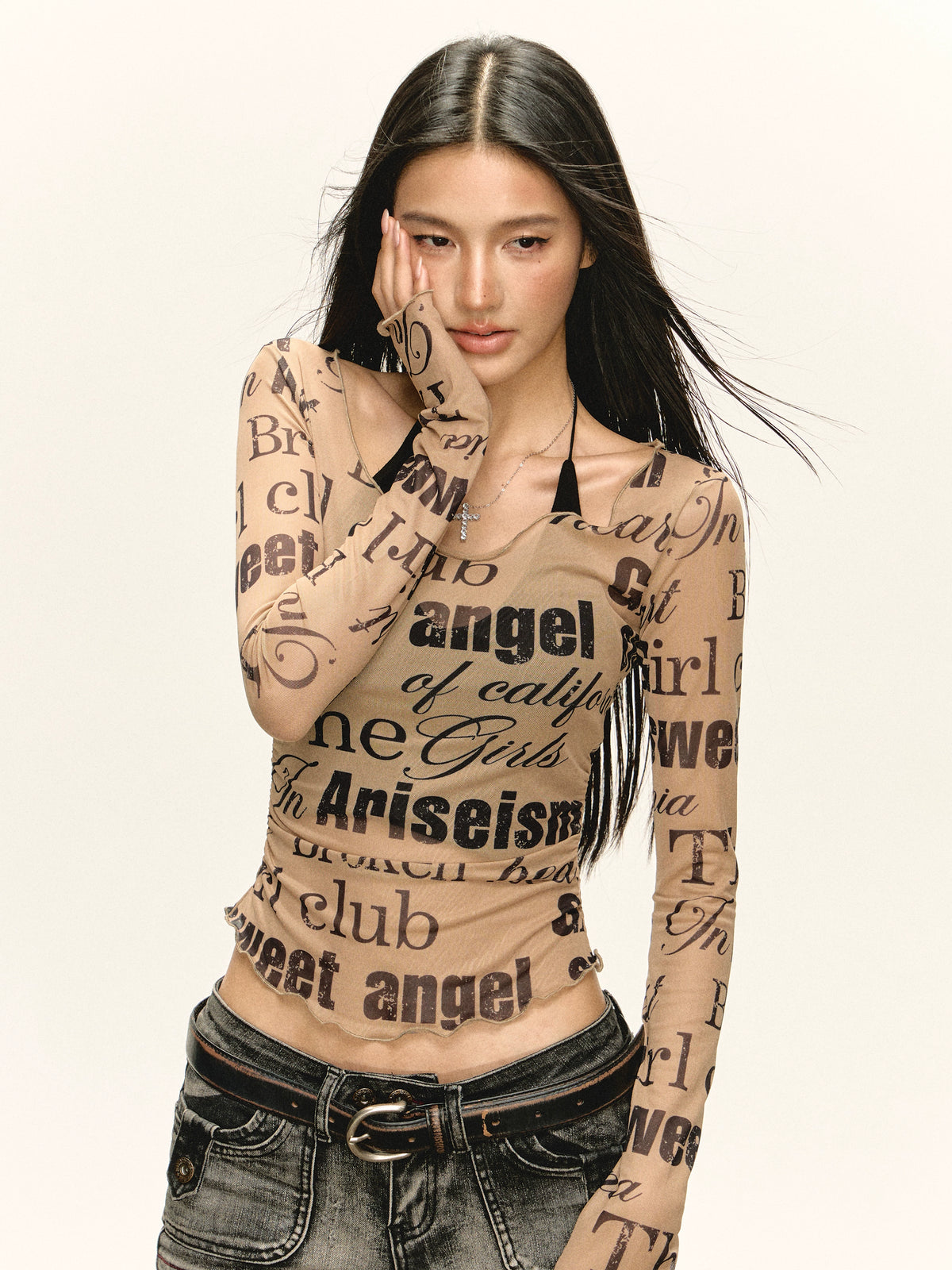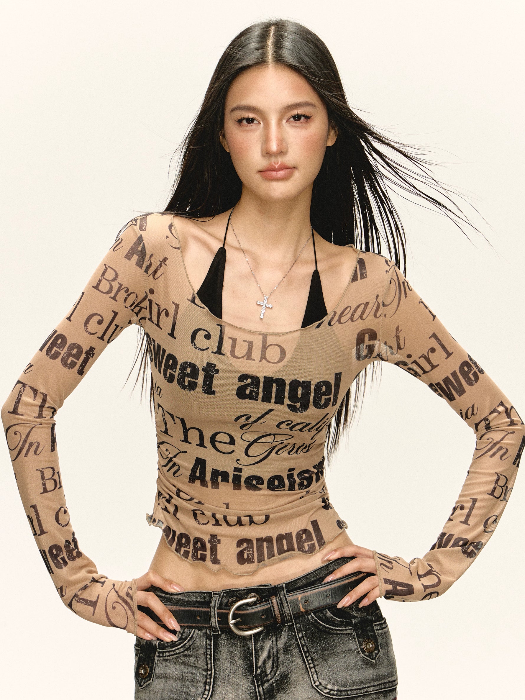 Maglia a maniche lunghe trasparente con stampa grafica