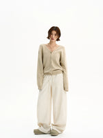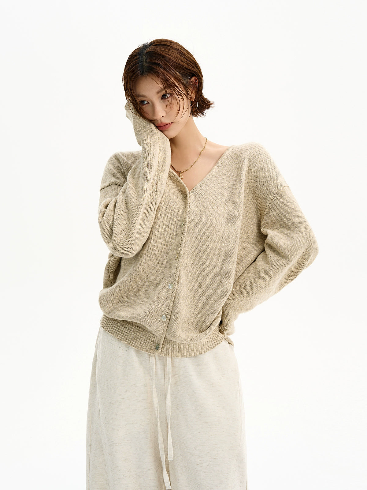 Cardigan in maglia di lino con scollatura a V