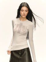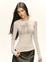 Maglietta grafica a maniche lunghe in tessuto trasparente con colletto alto