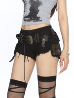 Pantaloni Corti in Denim a Vita Bassa con Bordo Grezzo