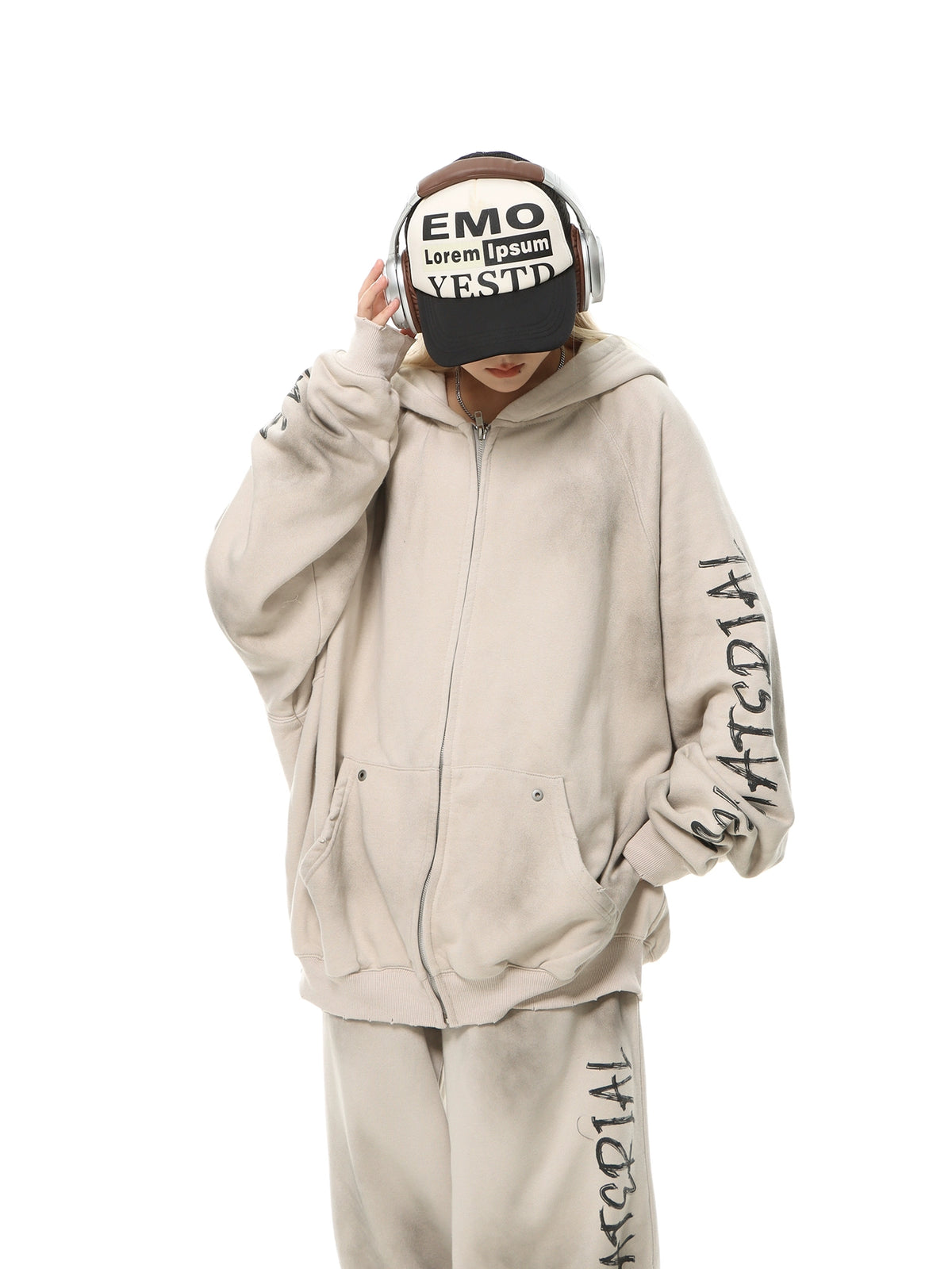 Felpa con cappuccio oversize strappata con zip