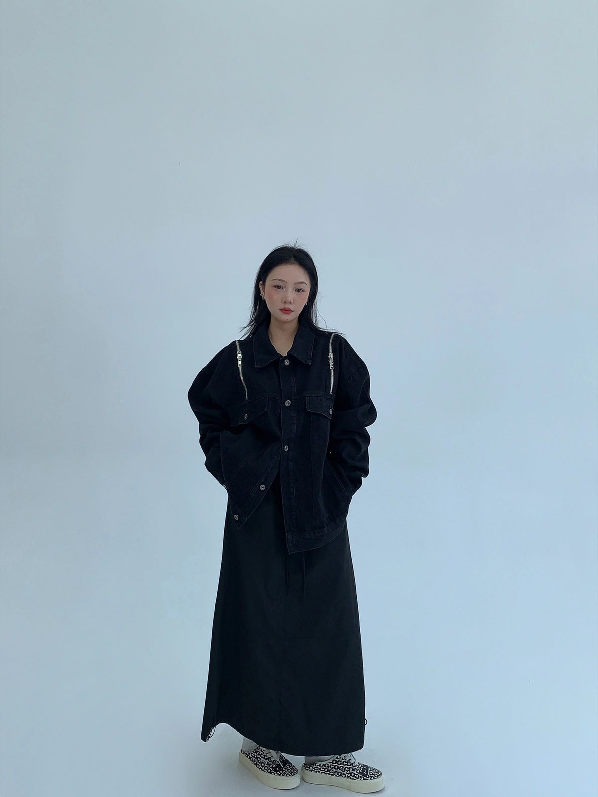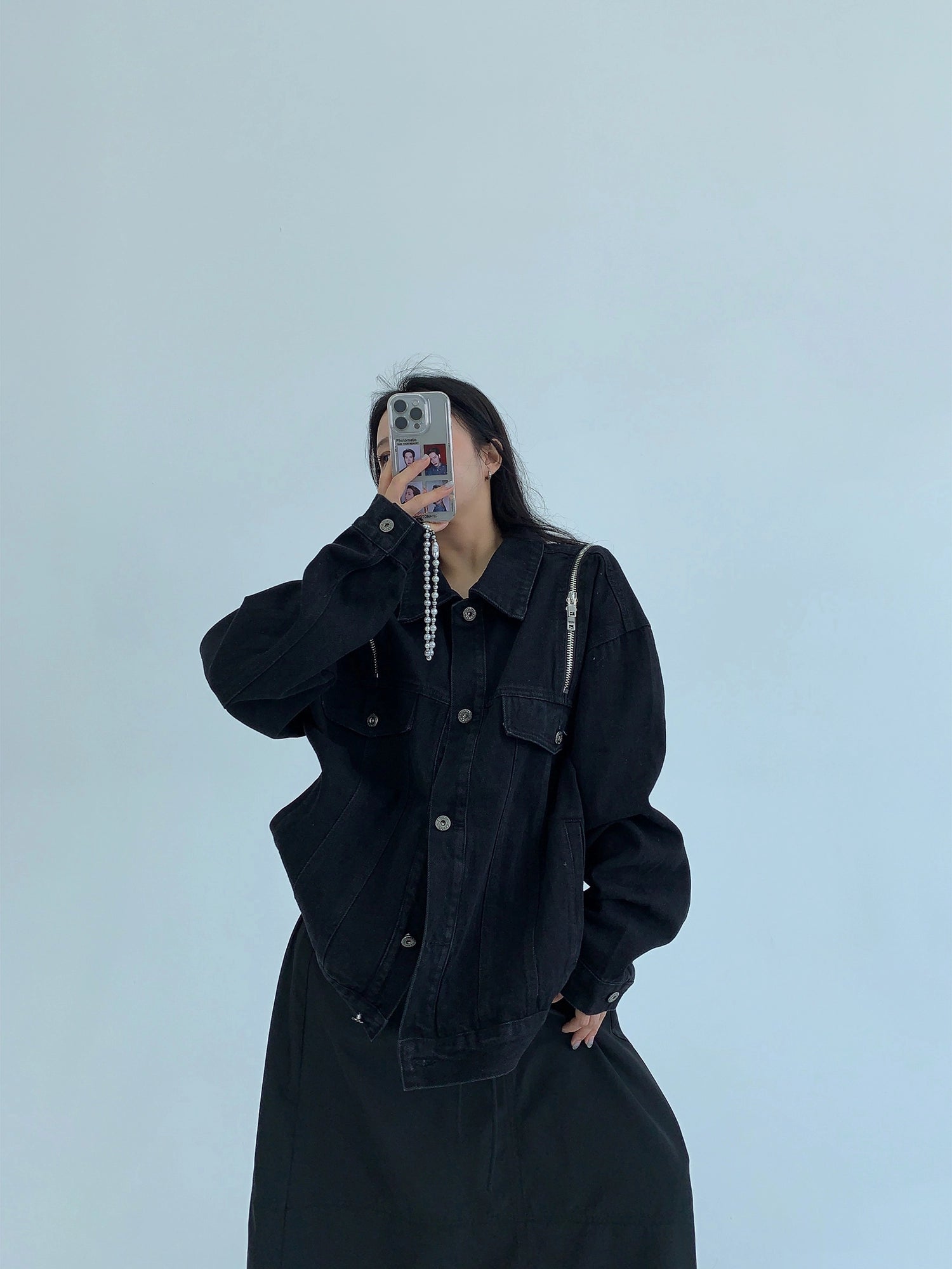 Giacca di jeans con zip oversize e tasche