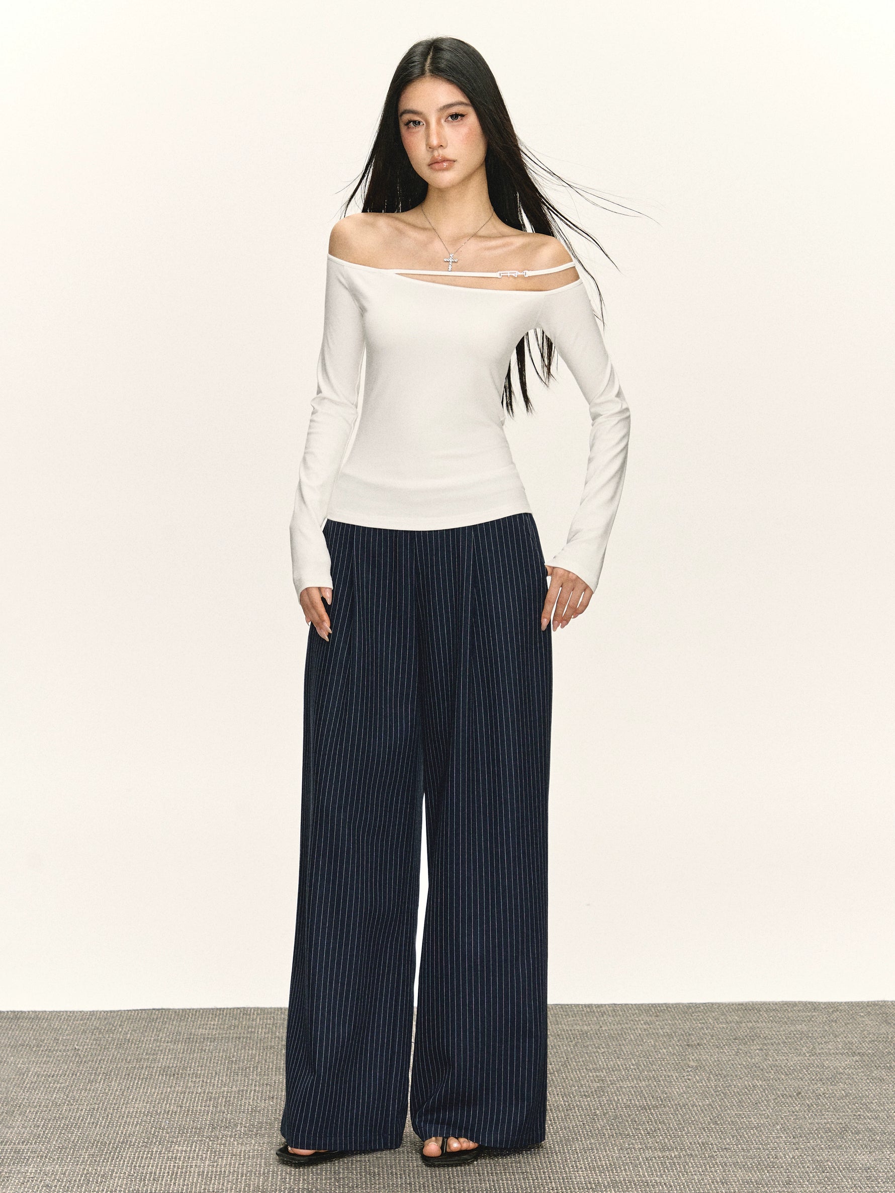 Pantaloni casual a gamba larga a righe