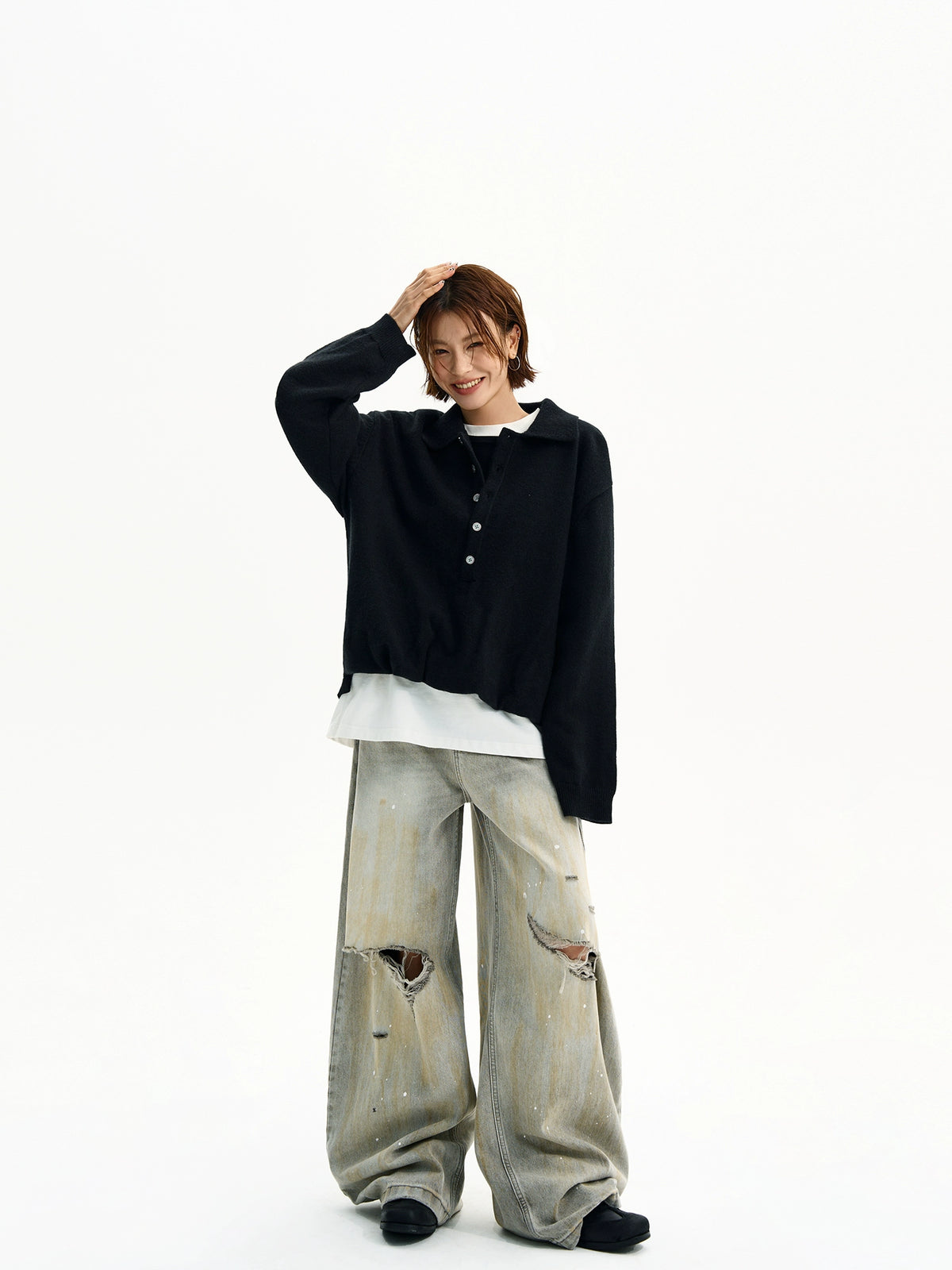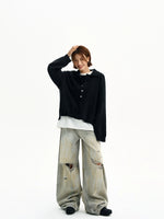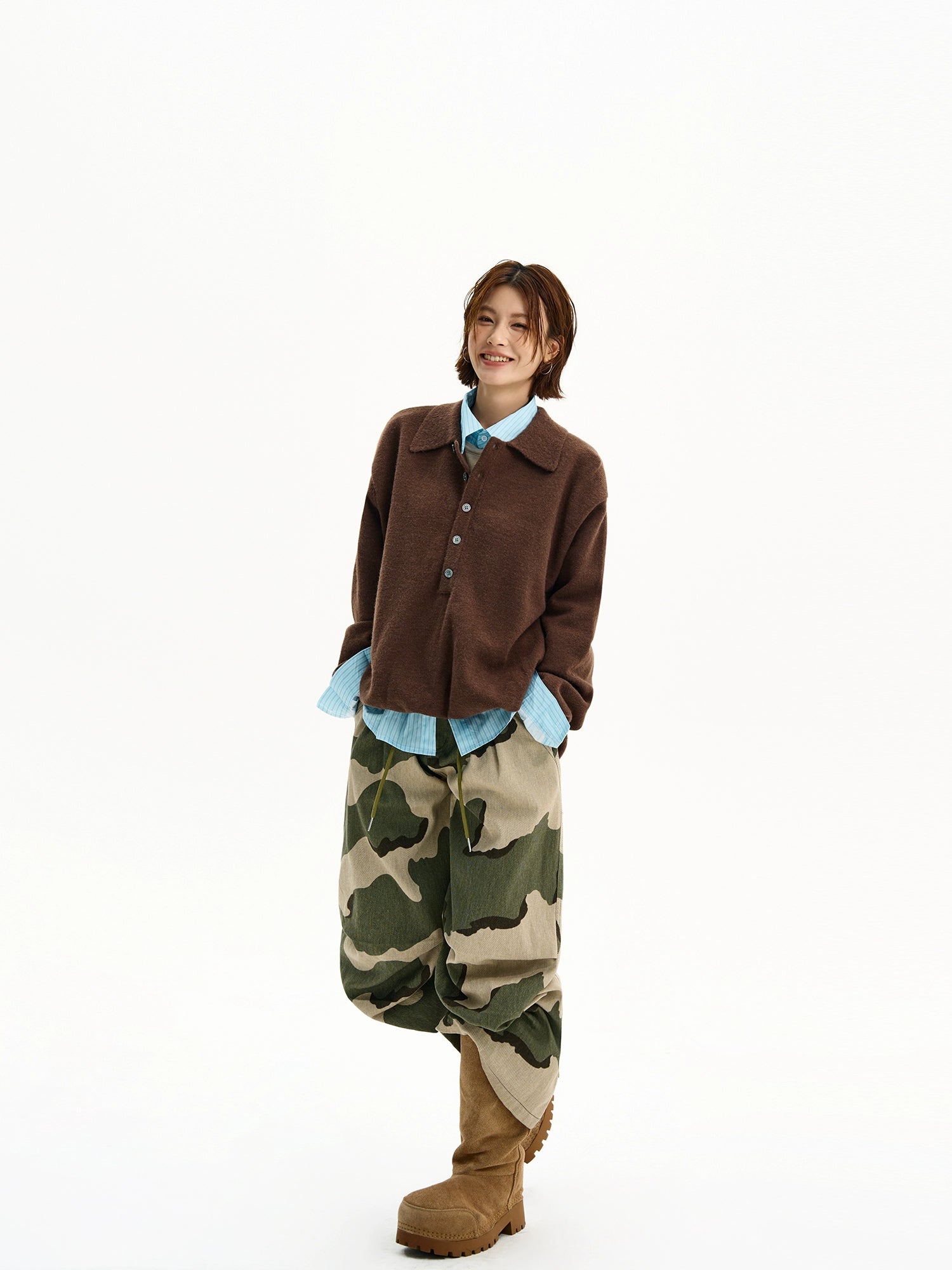 Cardigan in maglia con bottone morbido retro e colletto a revers