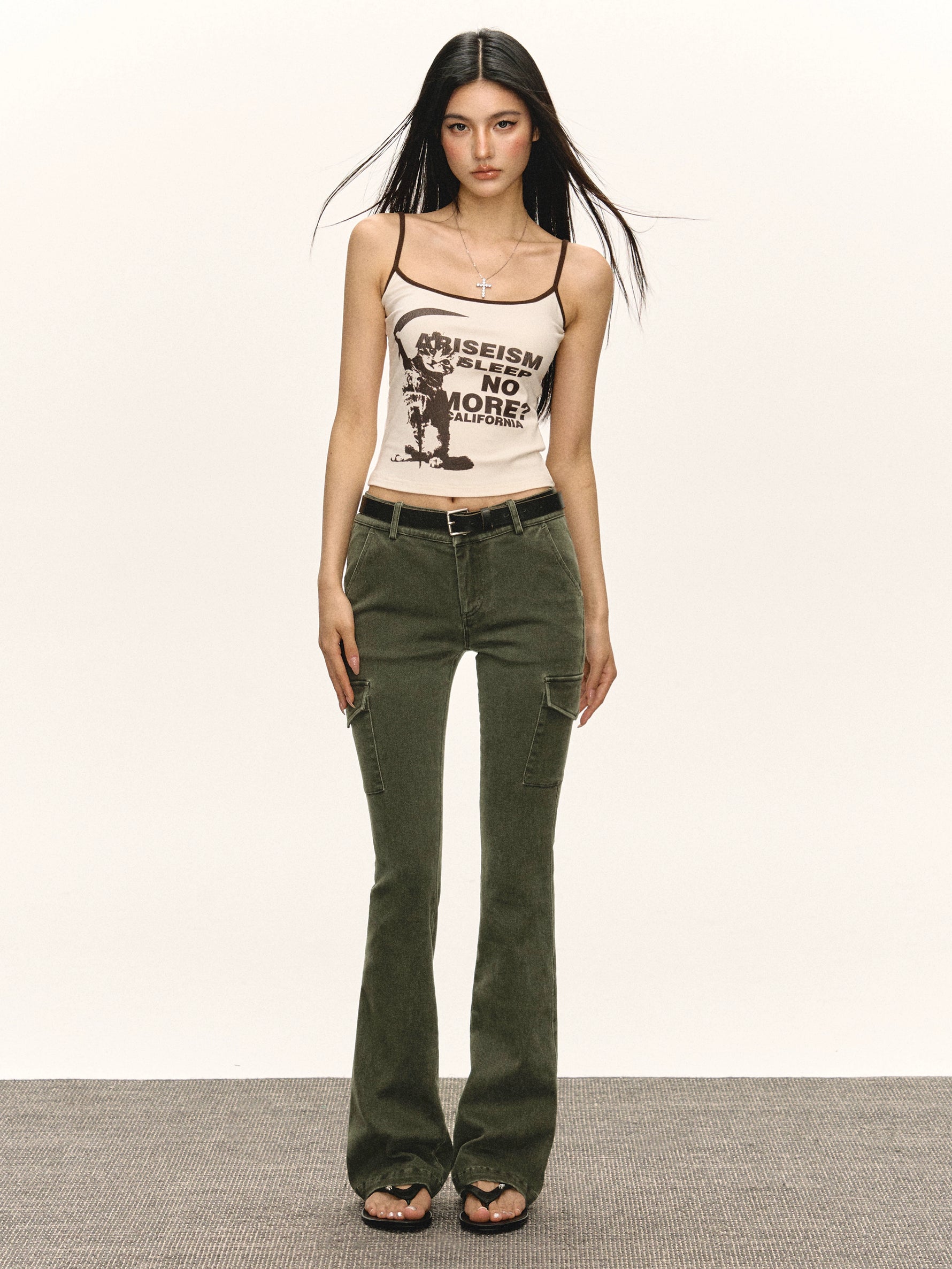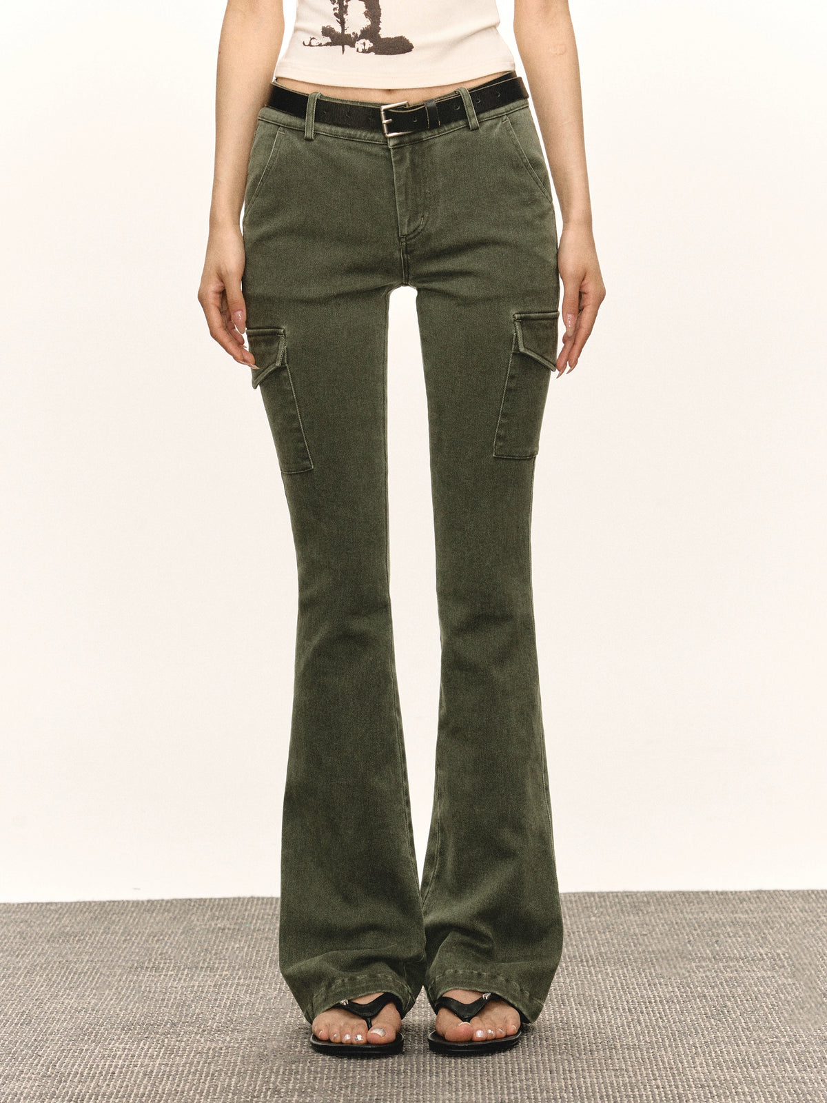 Pantaloni cargo a gamba svasata lavati retro