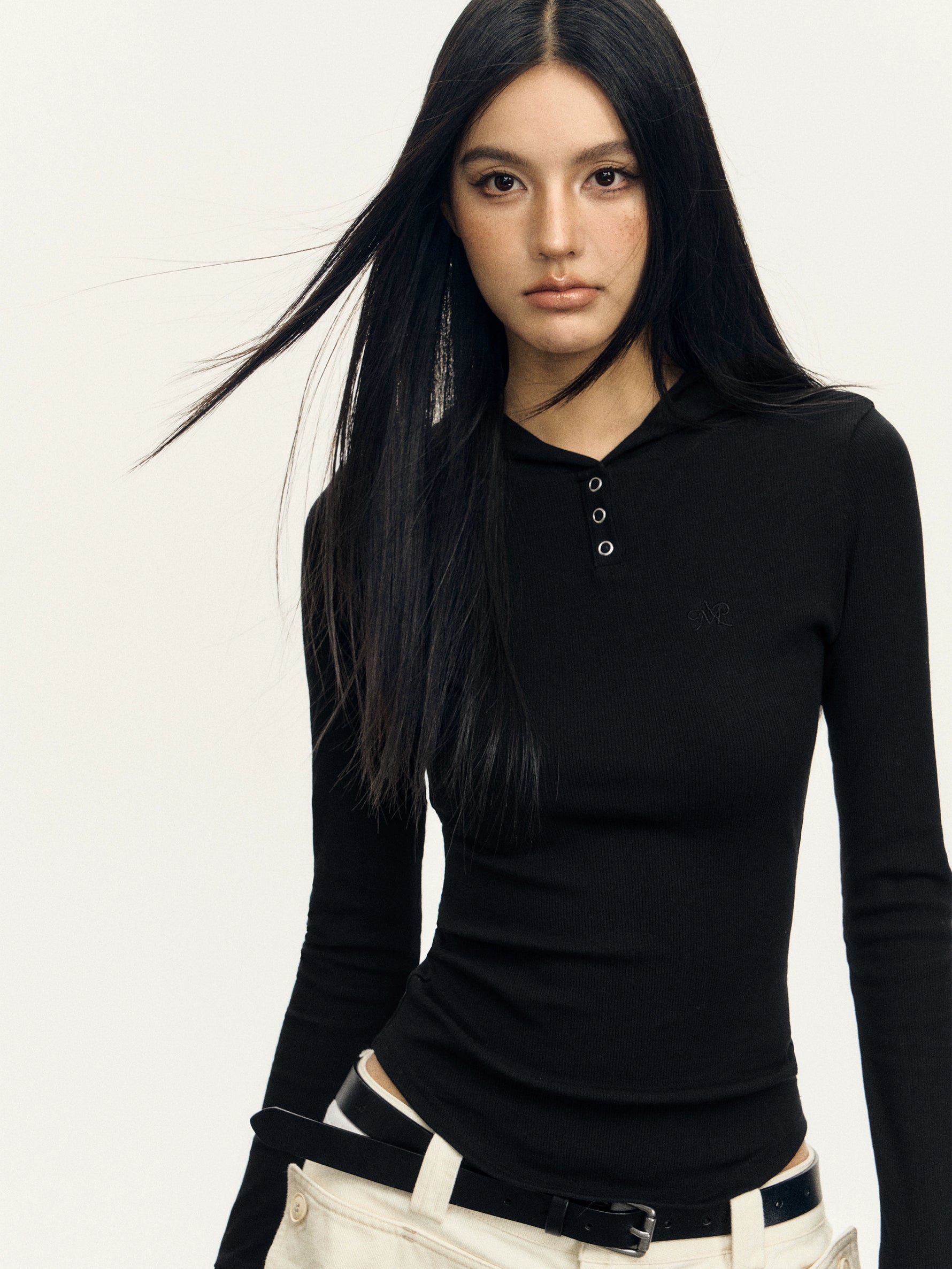 Maglione a collo alto con cappuccio a coste