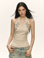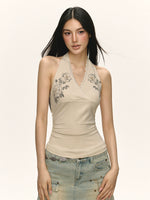 Camisola Halter in Pizzo Floreale con Scollatura a V
