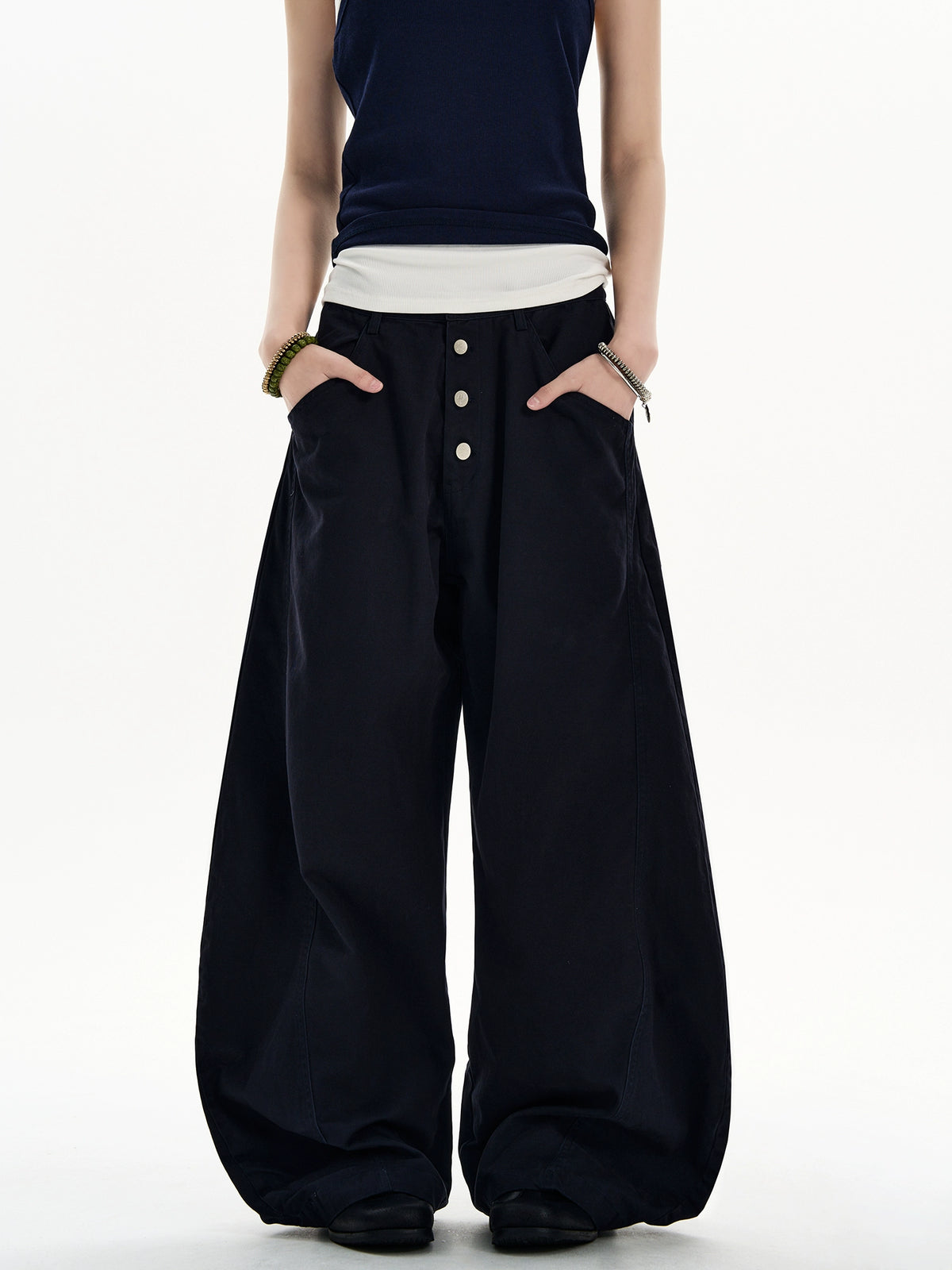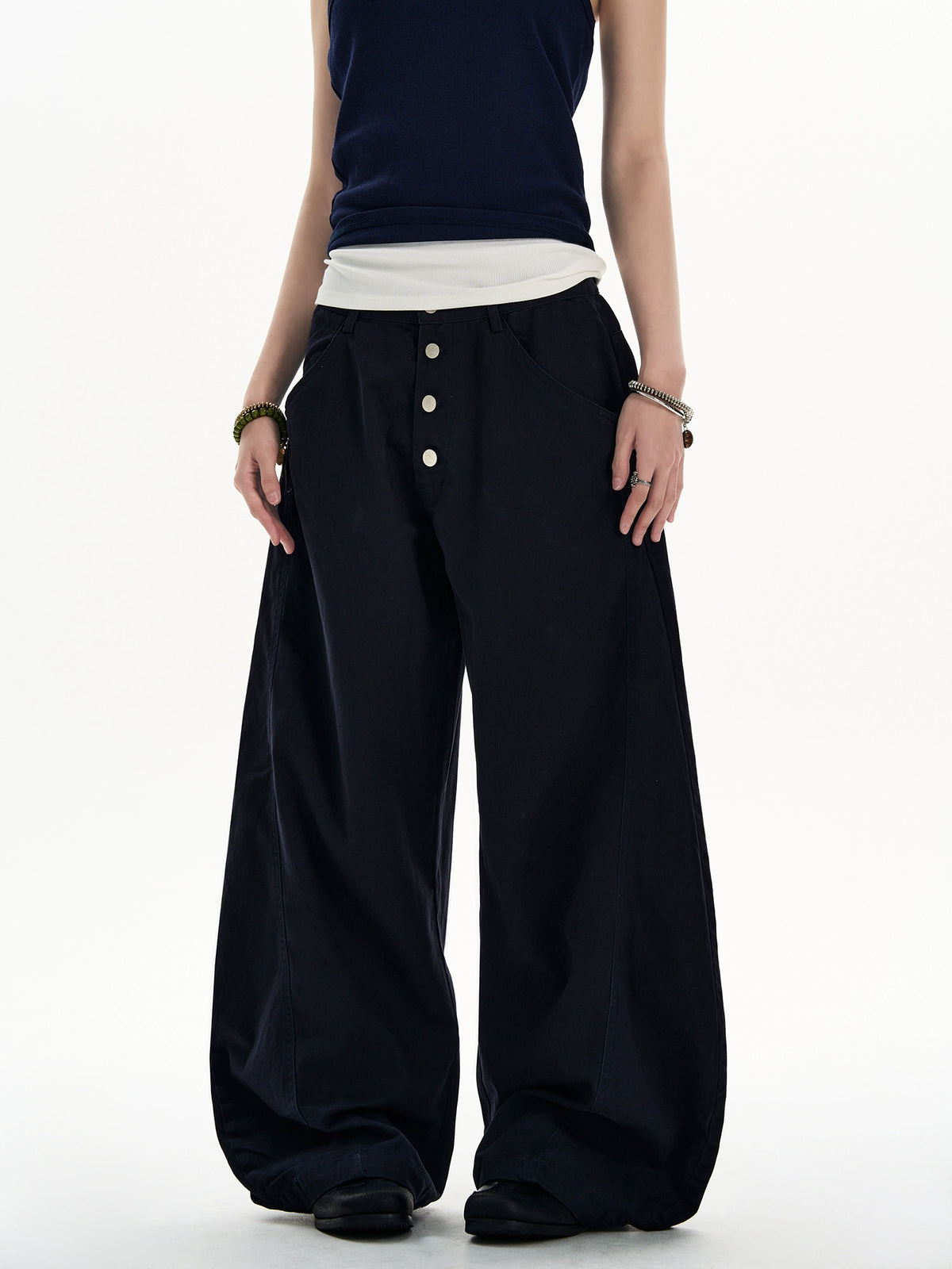 Pantaloni casual da lavoro a gamba larga con più bottoni
