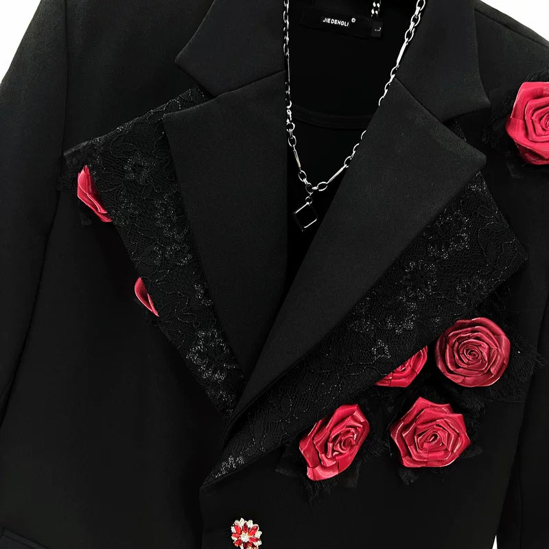 Giacca da abito con colletto doppio e rose 3D