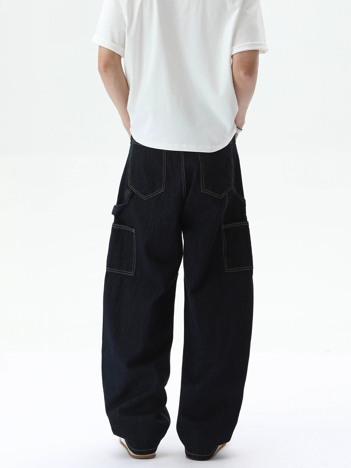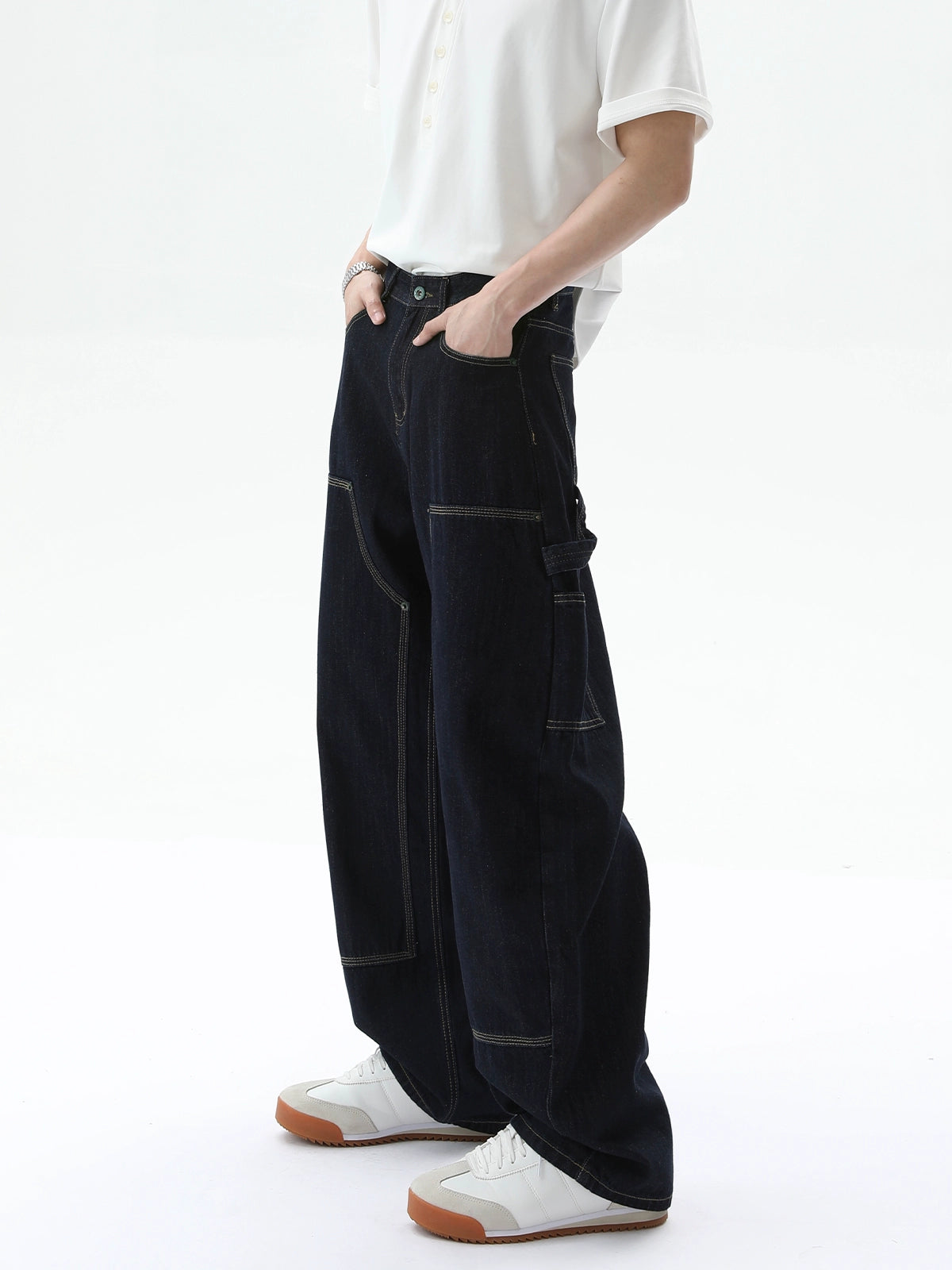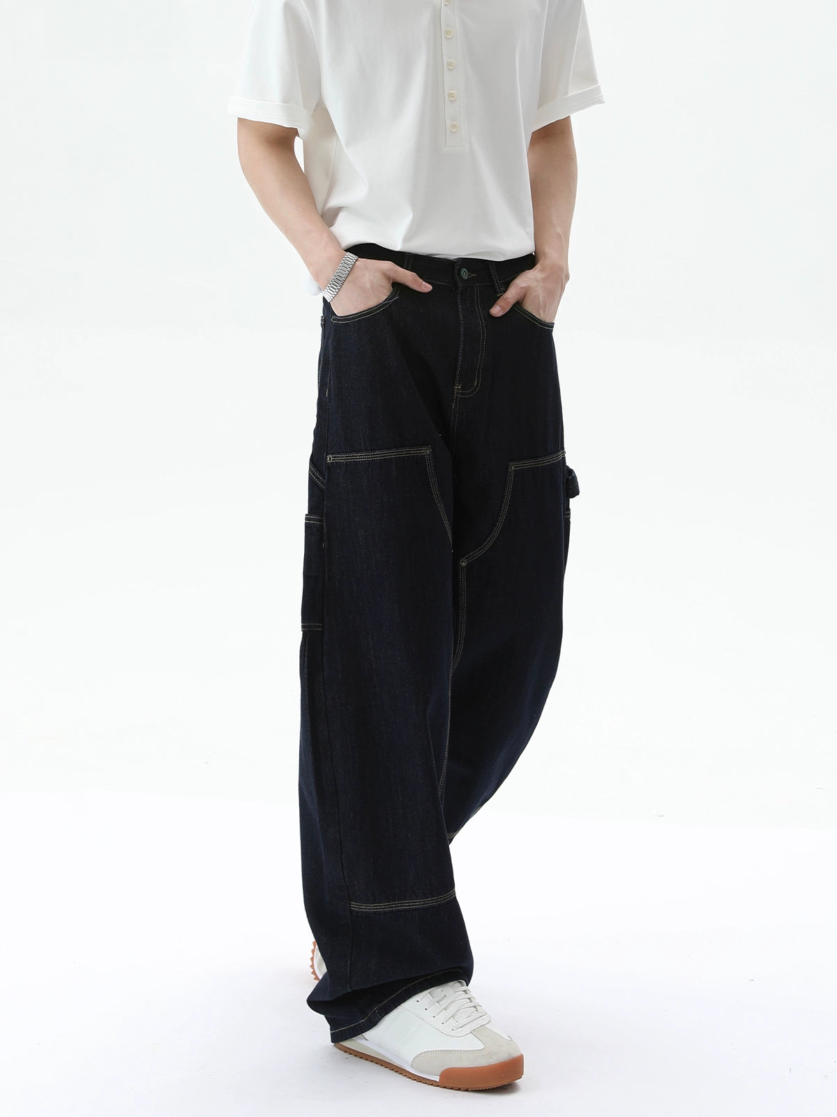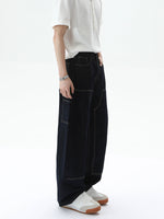 Jeans pantaloni dritti larghi in patchwork de-costruito