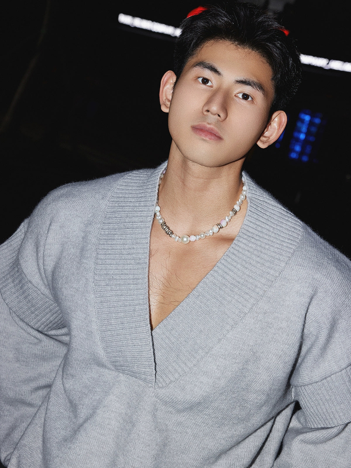 Maglione lavorato a maglia con scollo a V profondo