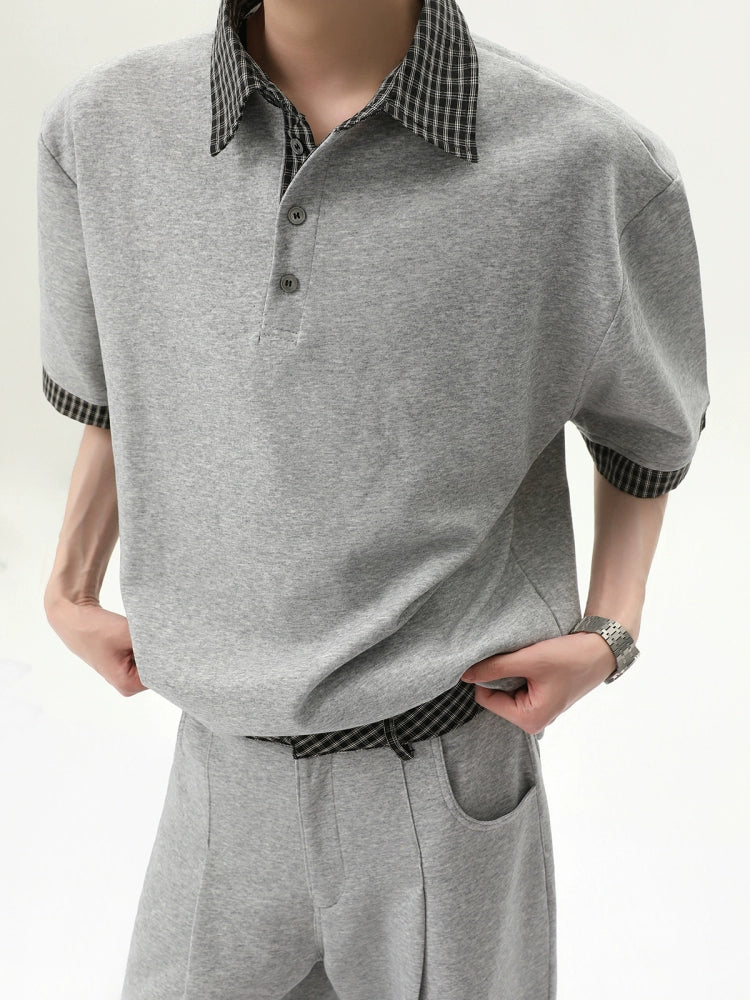 Set di Polo Shirt e Pantaloni con Collo a Quadri