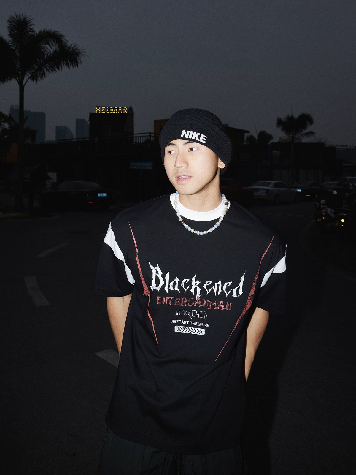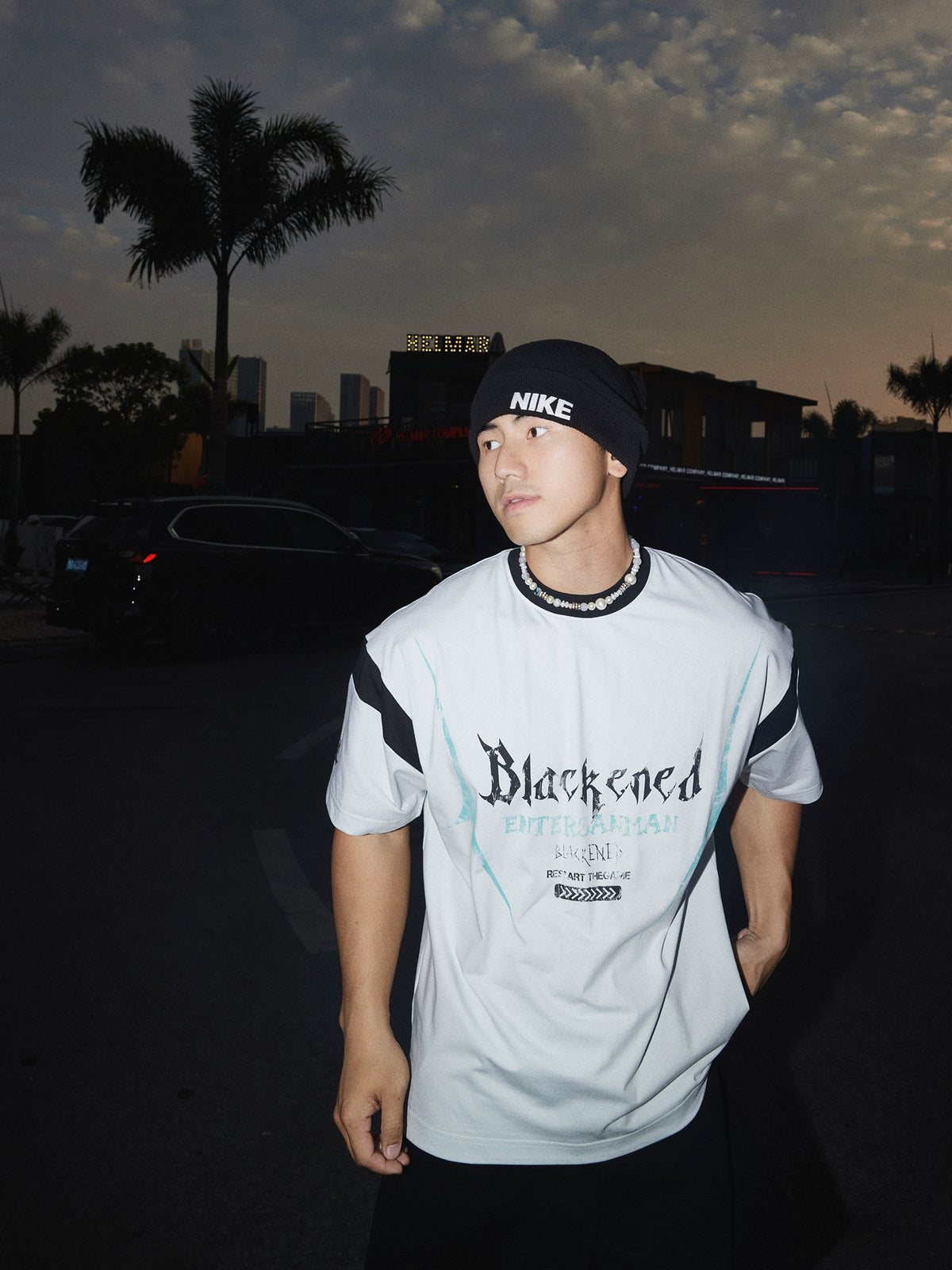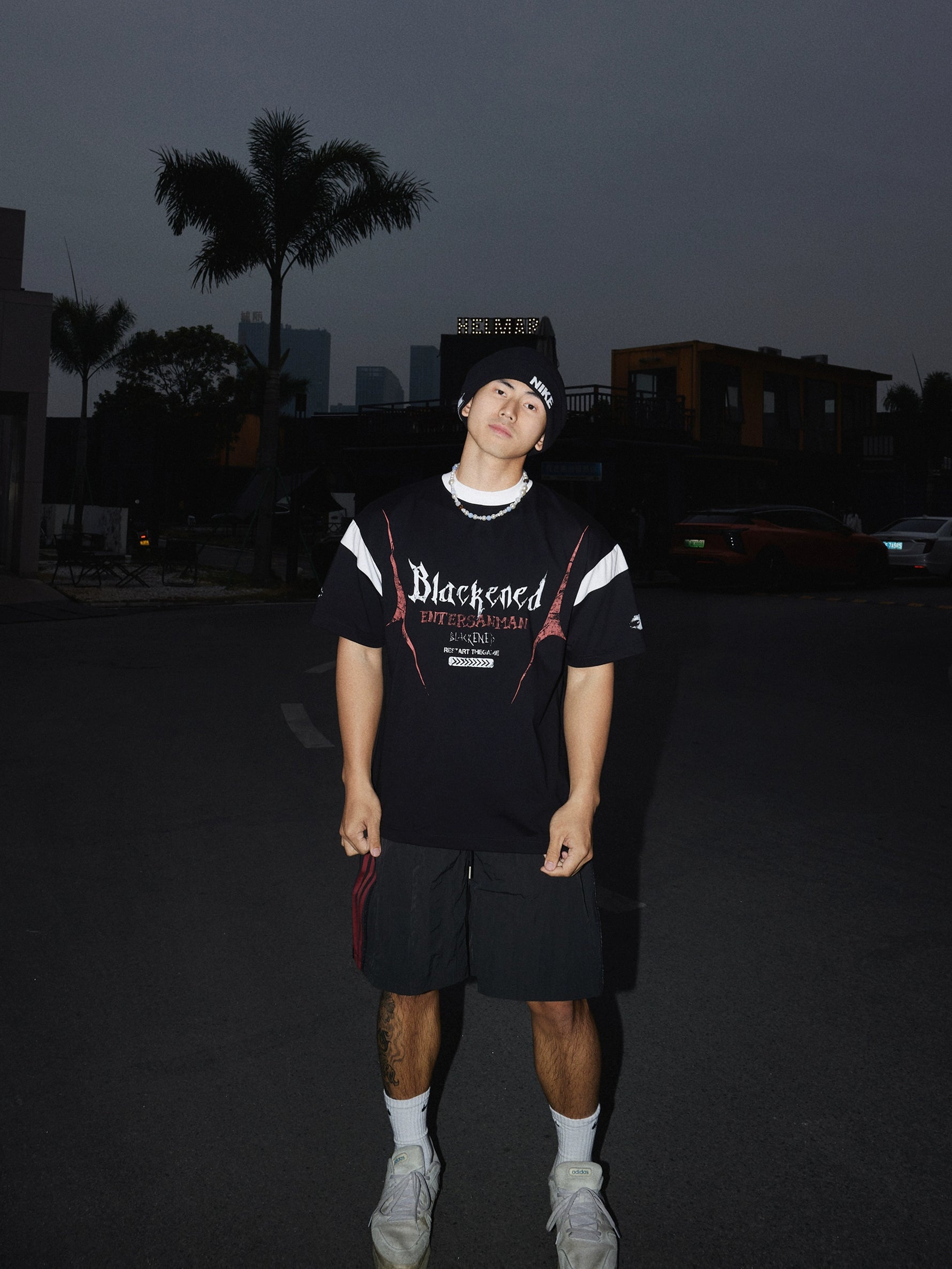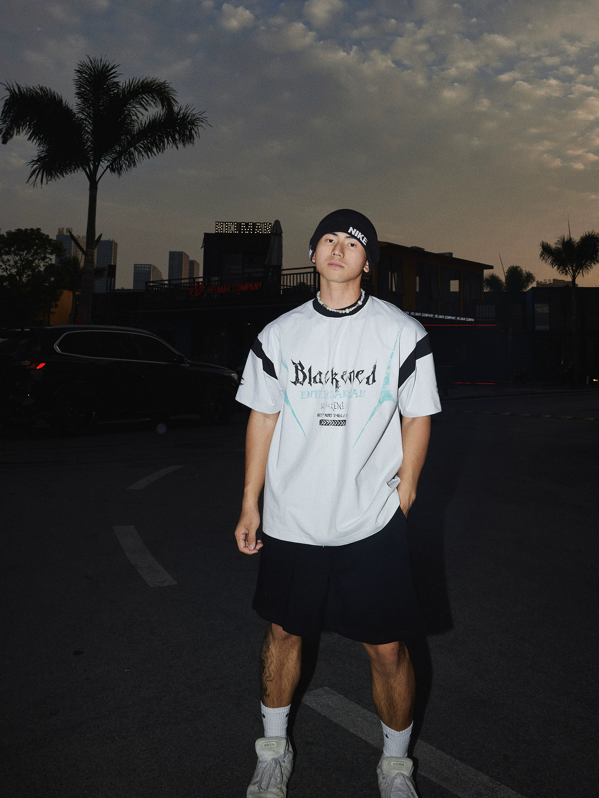 Pullover a maniche corte con stampa di lettere in patchwork retro