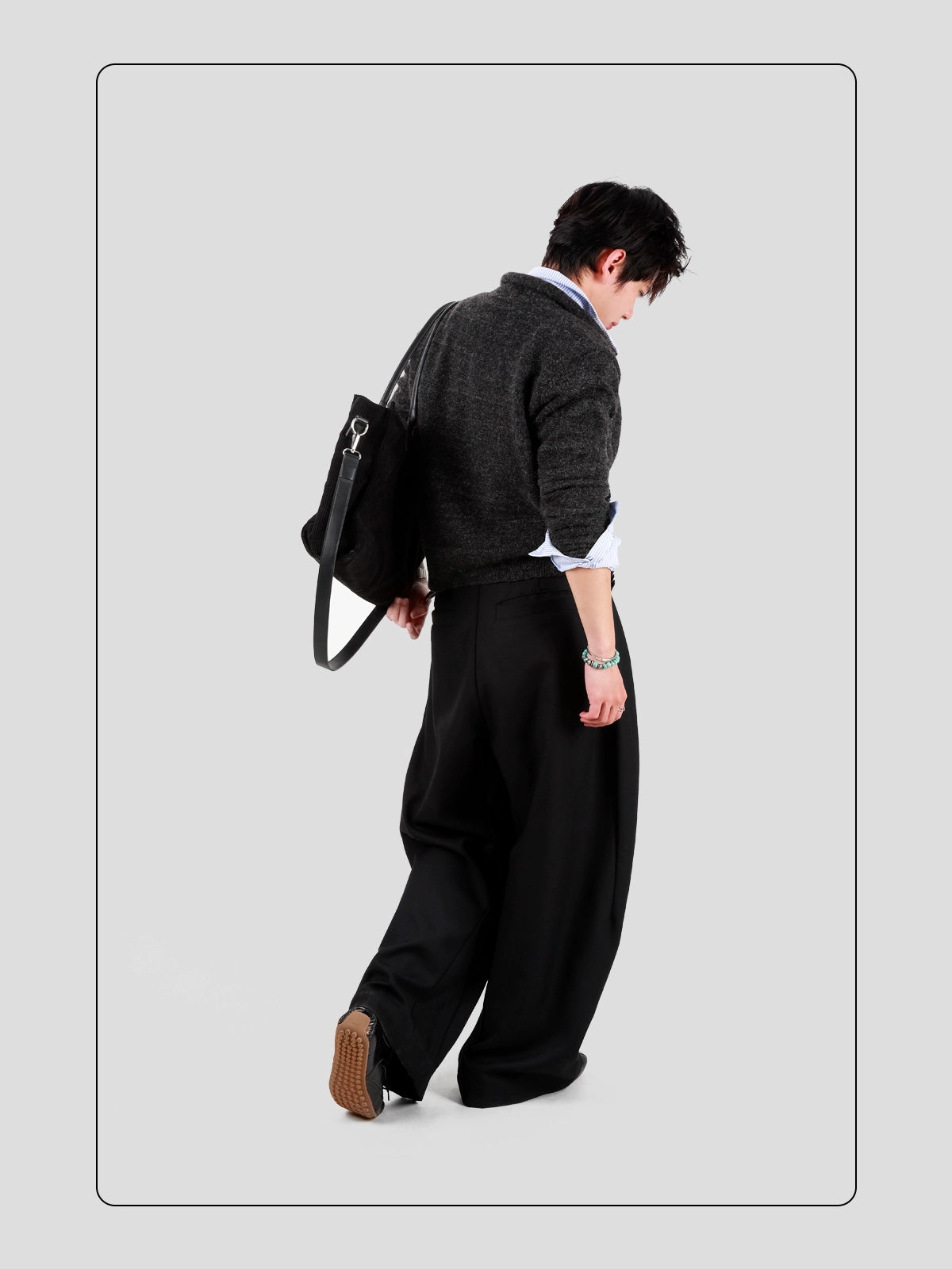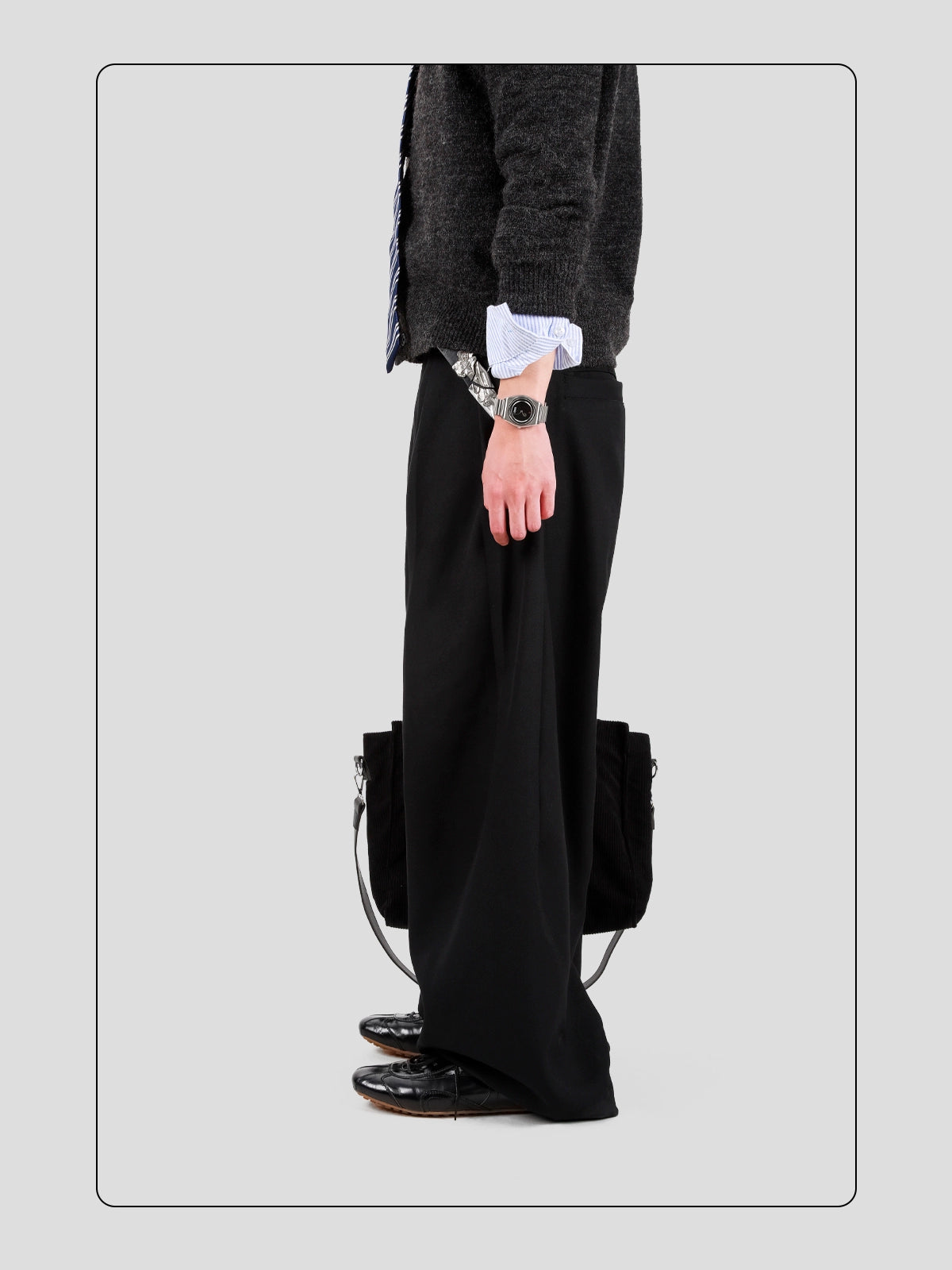- Colore nero con cuciture visibili e dettagli del pannello