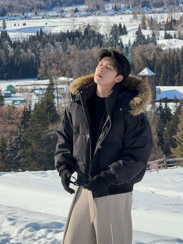ファーのトリムが付いたフード付きダウンウィンタージャケット