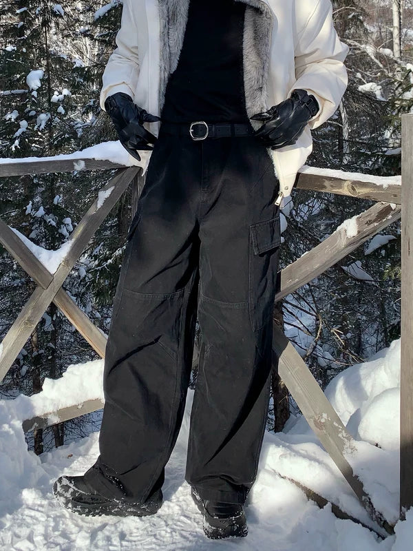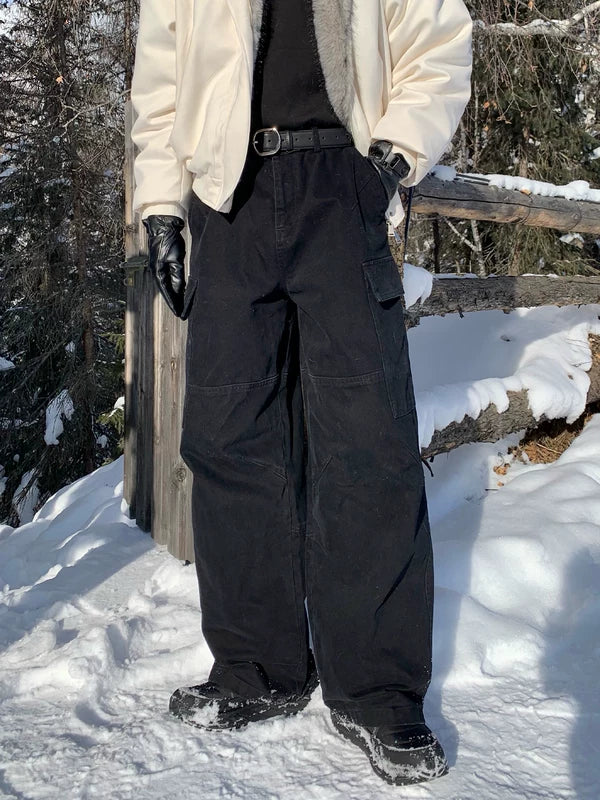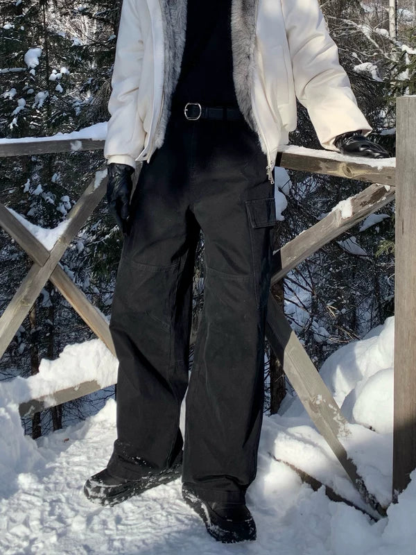 解体されたマルチポケットのルーズストレートレッグパンツ