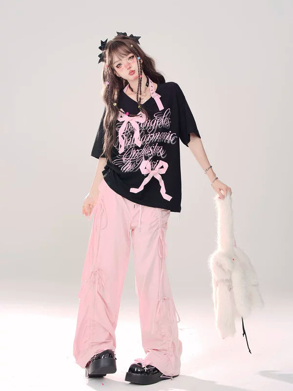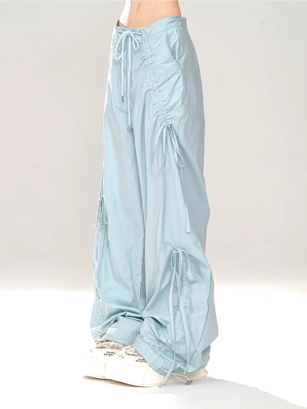 ルーシュドドローストリングワイドレッグカジュアルパンツ