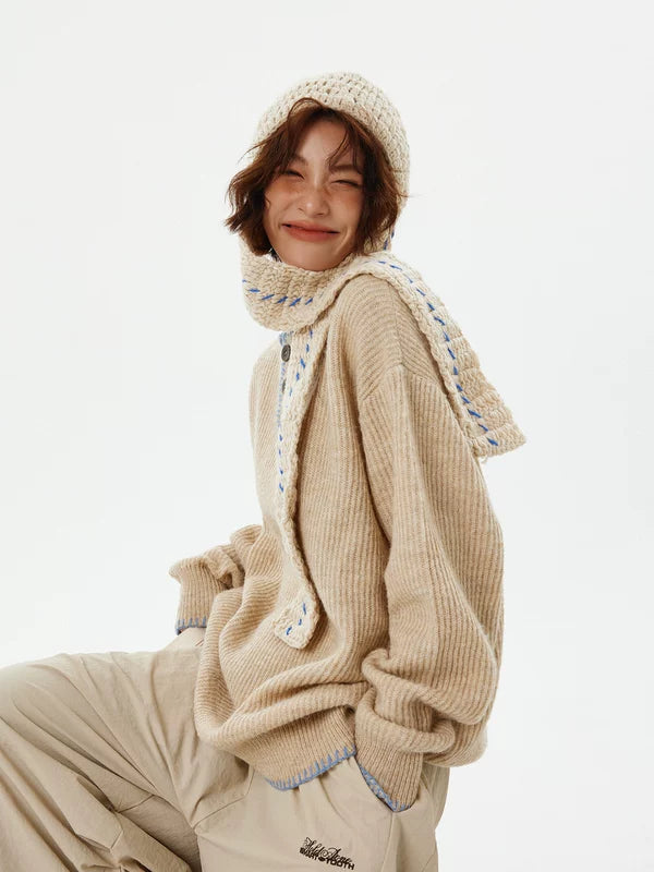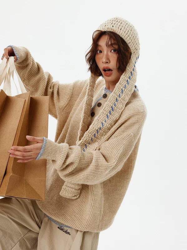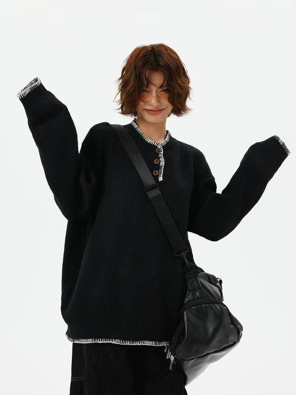 ヘンリーカラー ニット プルオーバー スウェットシャツ