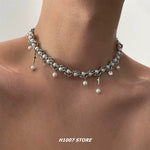 クロスペンダントパールチョーカーネックレス