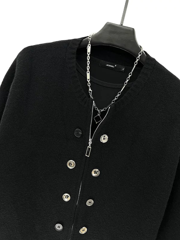 ボタンダウンニットラウンドネックカーディガン