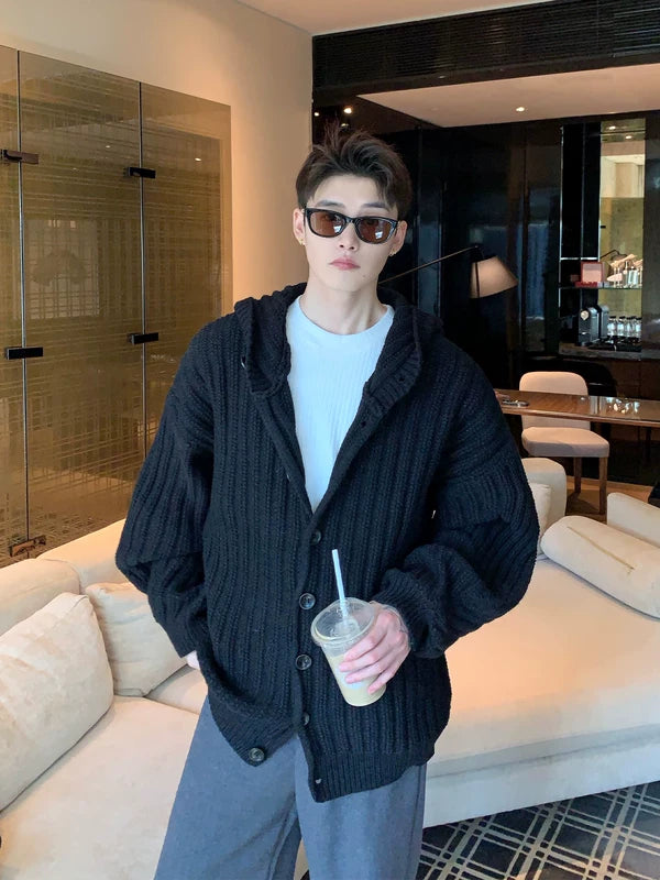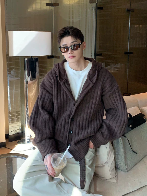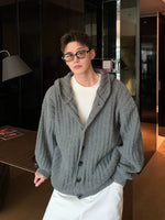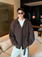 チャンキーリブ編みフード付きカーディガンセーター