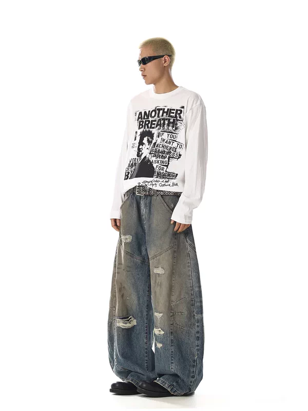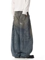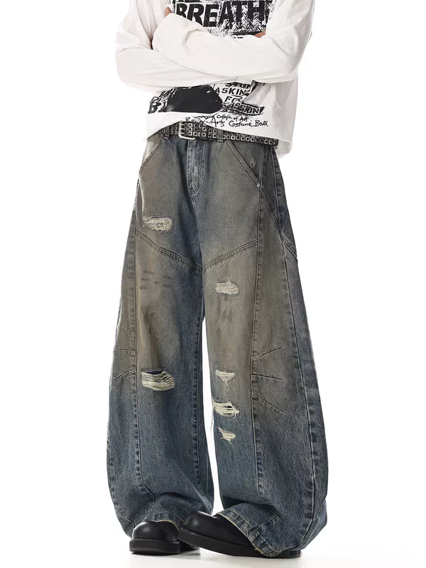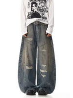 ダメージ加工バギーワイドレッグジーンズパンツ