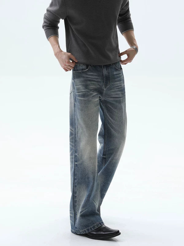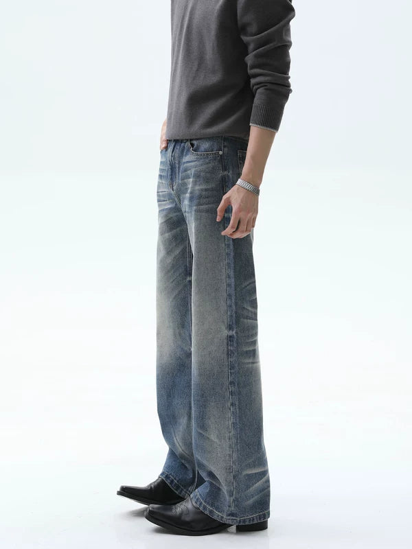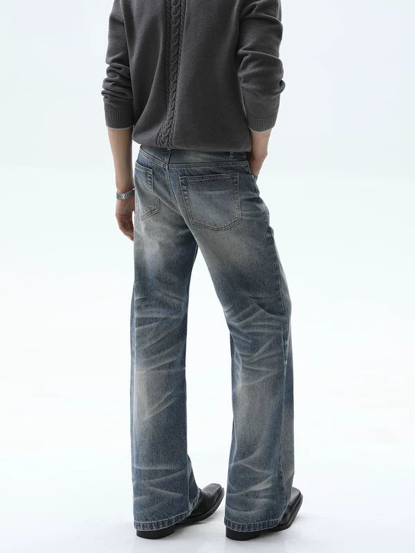 ダメージ加工されたウォッシュストレートレッグワイドパンツ