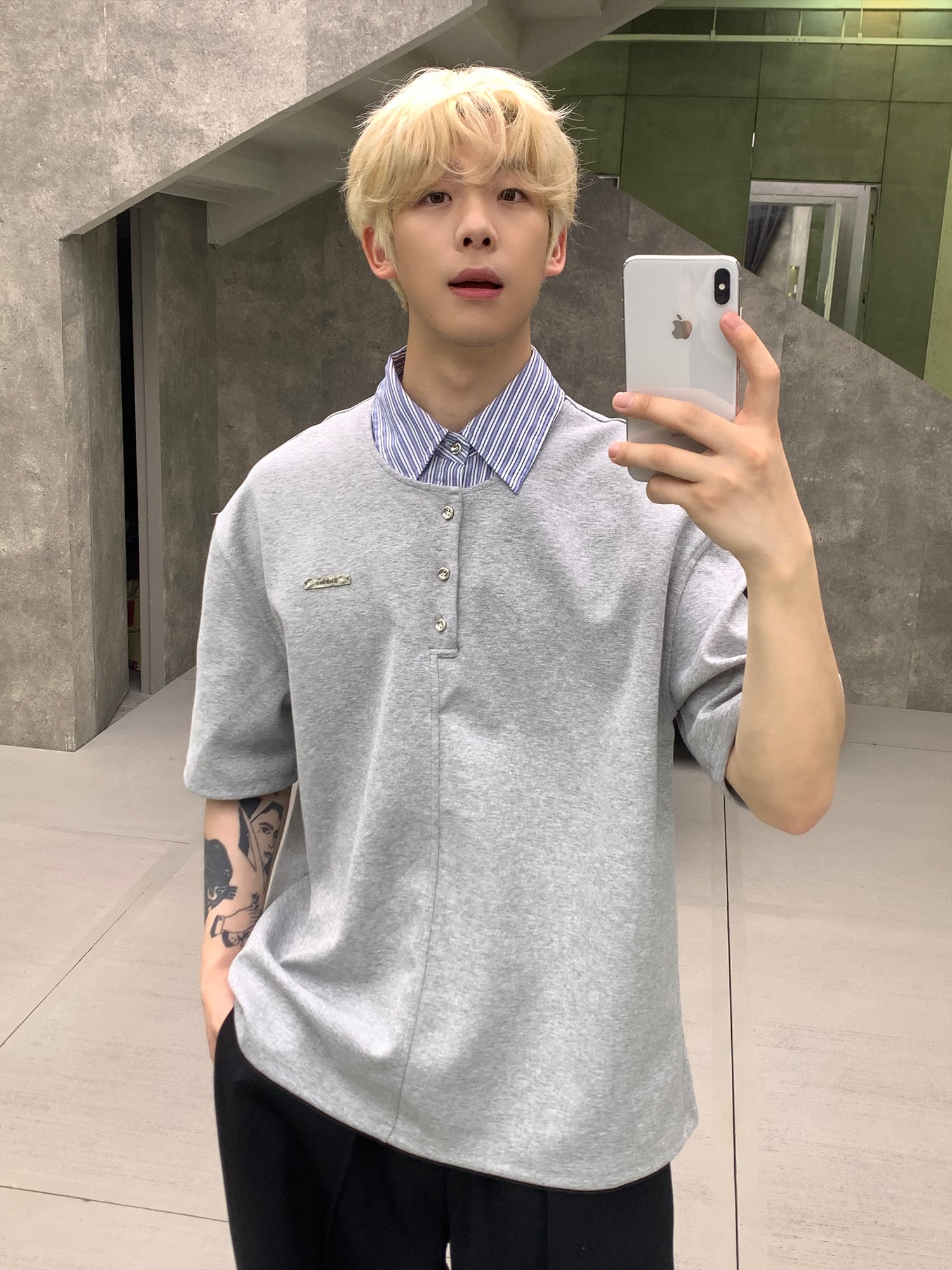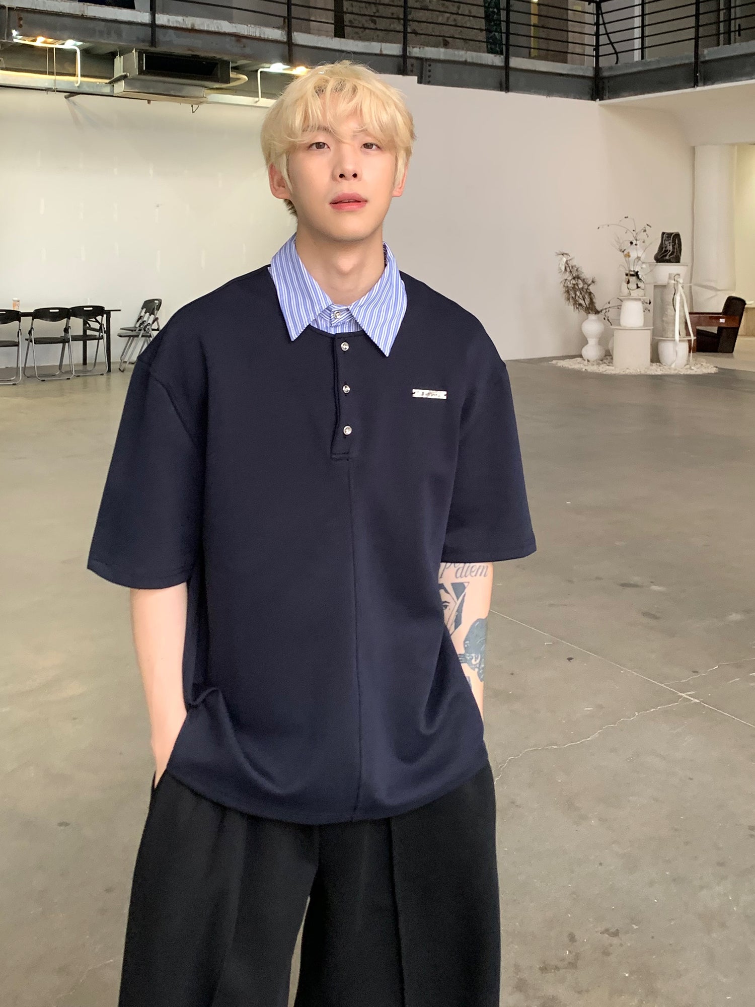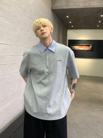 ストライプラペルルーズフィットポロシャツ