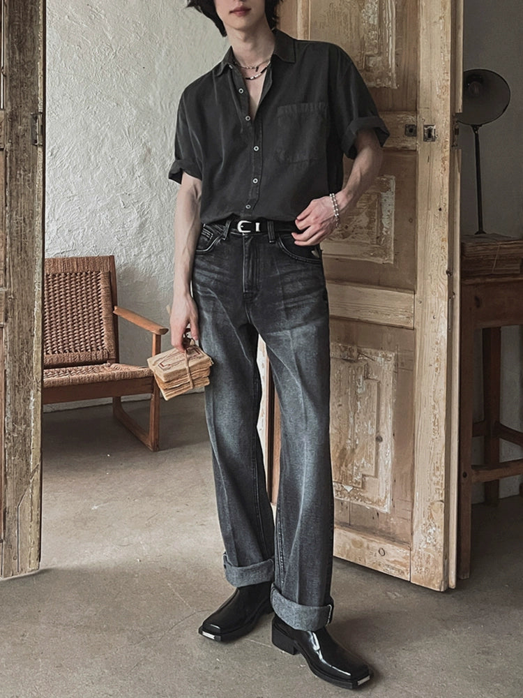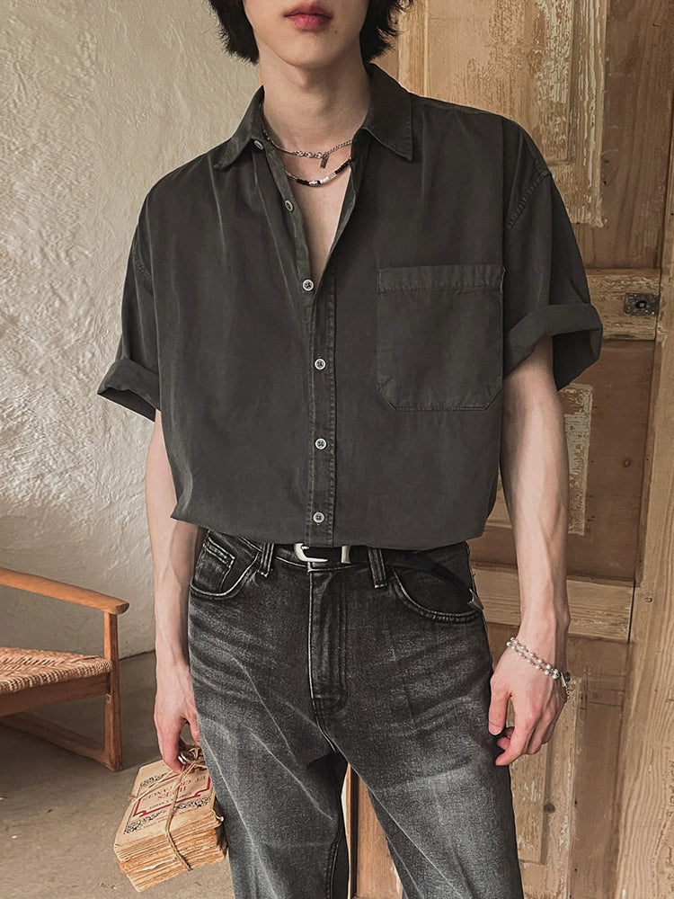 ウォッシュド ルーズ ショートスリーブ カジュアル シャツ