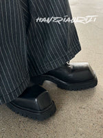 スクエアトゥ チャンキーソール レザー ダービーシューズ