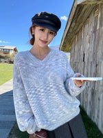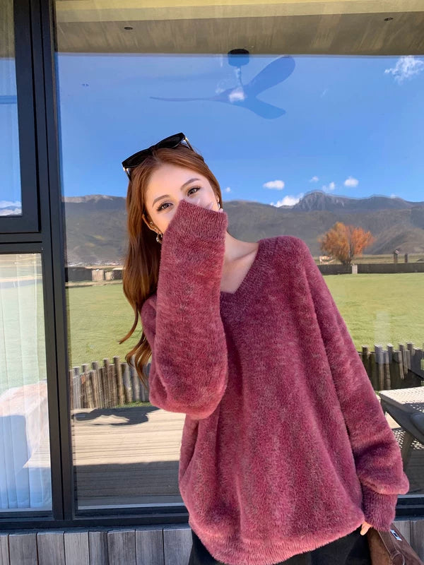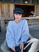 フェイクミンクフリース Vネック プルオーバー セーター