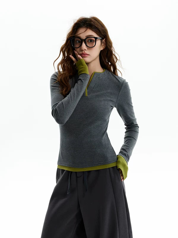 フェイクツーピーススリムフィットヘンリーボタンシャツ