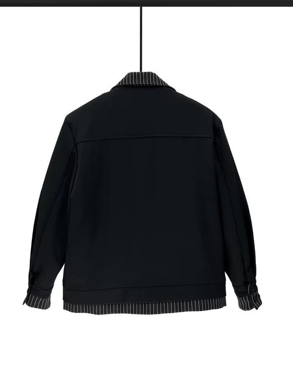 レイヤードストライプラペルデコンストラクテッドジャケット