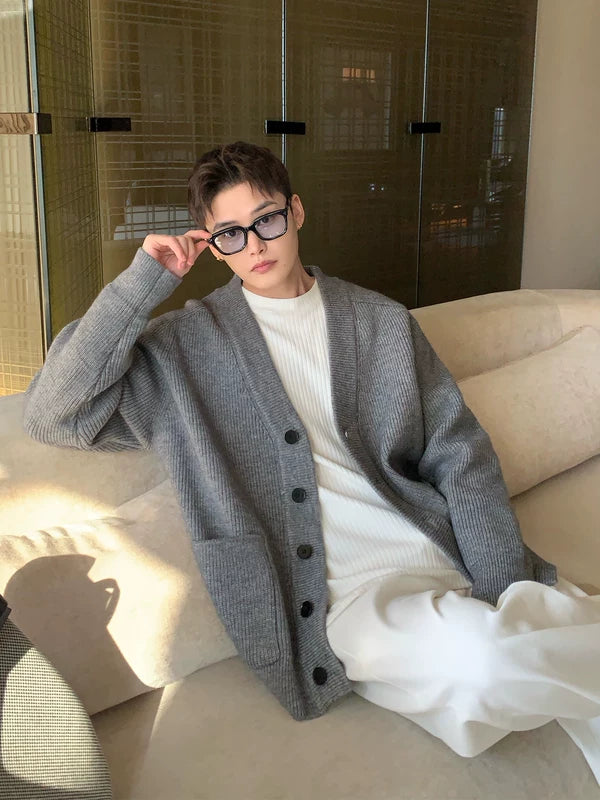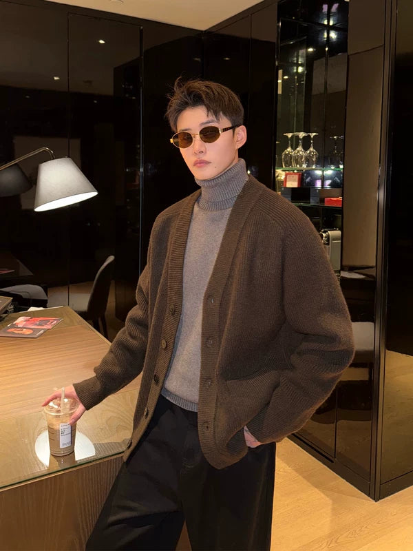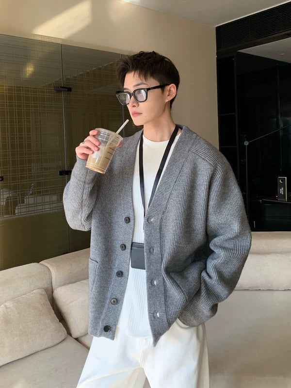 チャンキー ニット Vネック ボタン カーディガン セーター