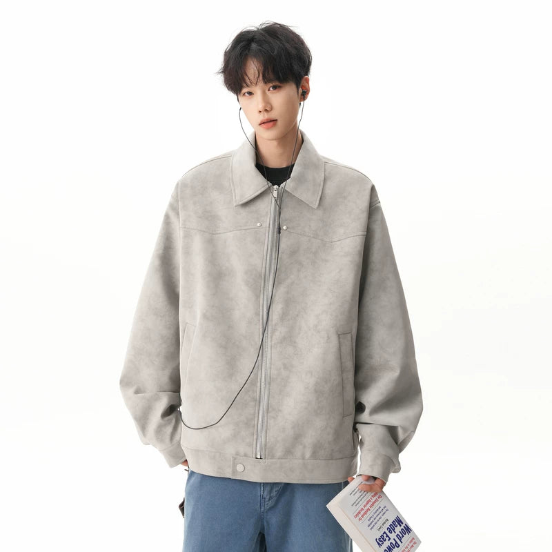タイダイPUレザー襟付きバイカージャケット