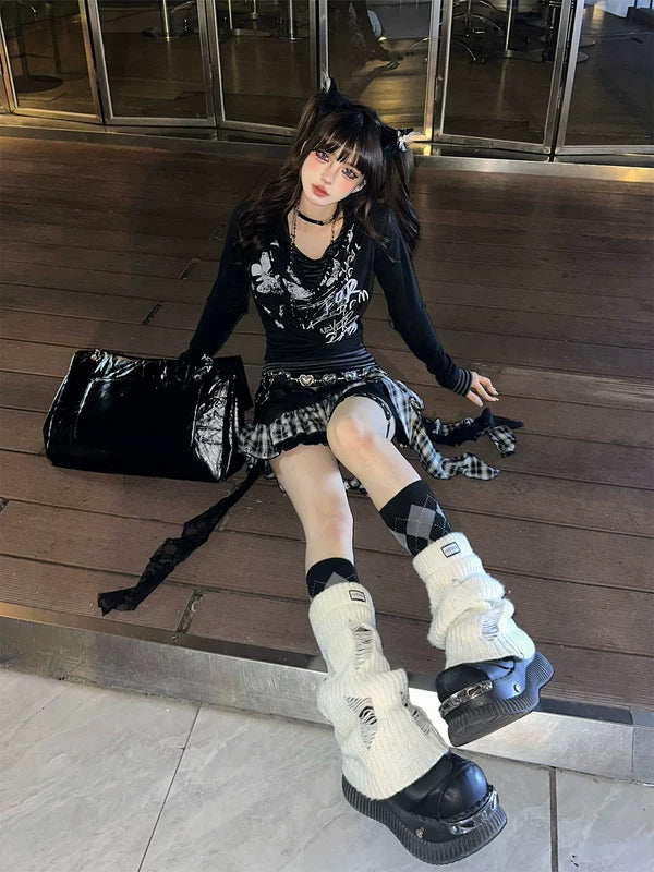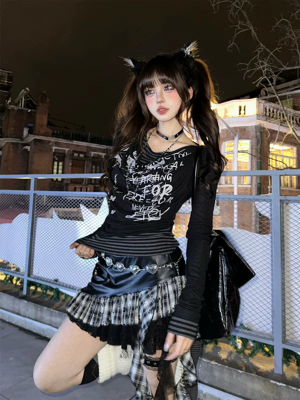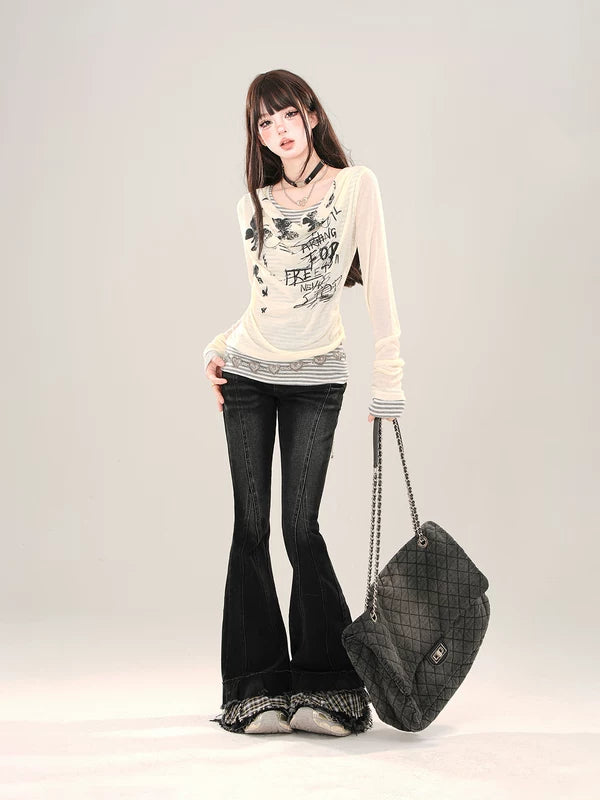 メッシュグラフィック長袖レイヤードTシャツ
