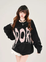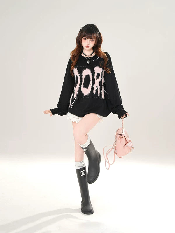 グラフィックレタリング付きのオーバーサイズニットセーター